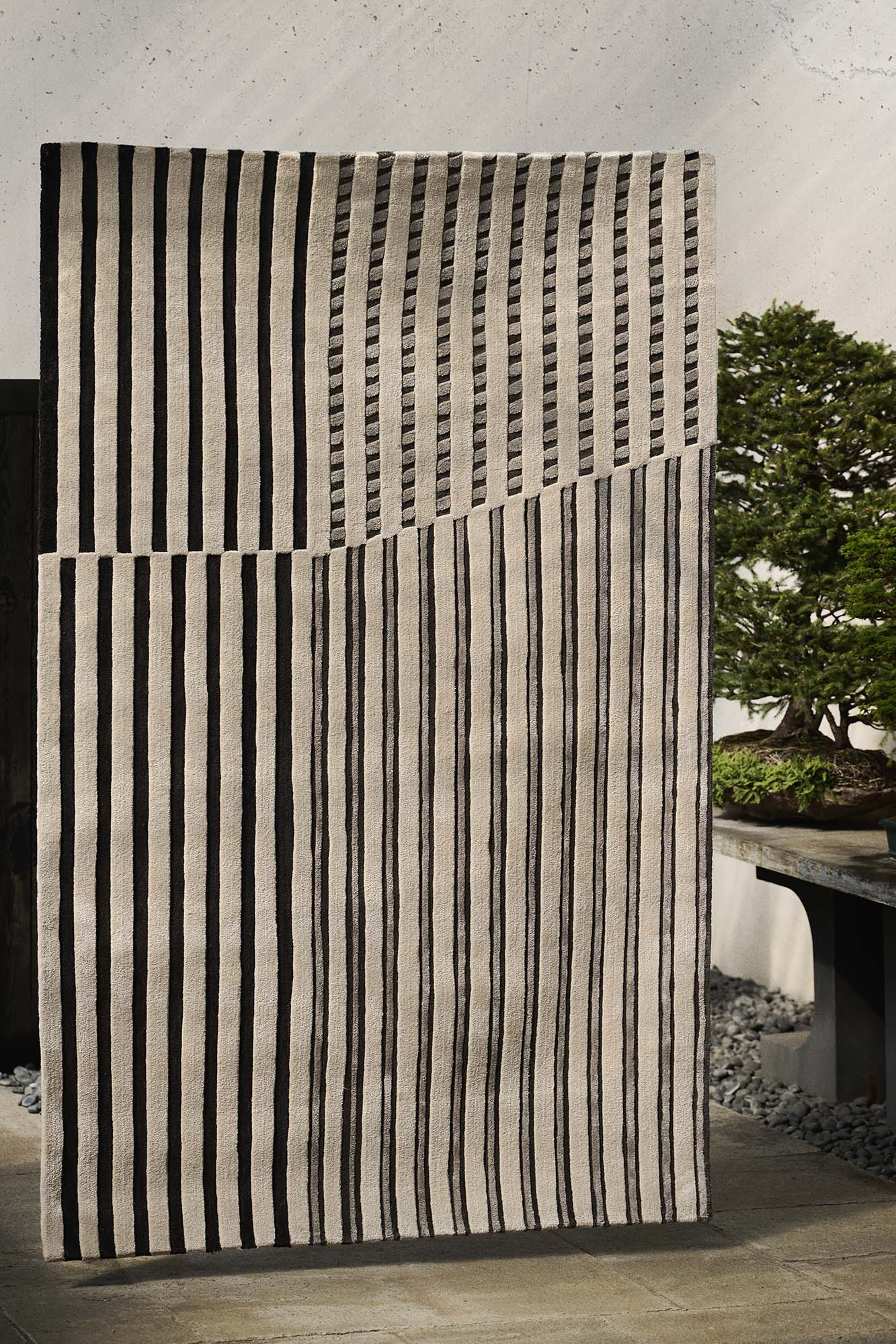 Während des Fuorisalone verwandelt sich das Crespi Bonsai Museum in eine Bühne für eine faszinierende Begegnung von Kunst, Natur und Design. Hier wird die Kollektion „Faces“ von Jaipur Rugs präsentiert, die in Zusammenarbeit mit Kengo Kuma entstanden ist. Im Museum und im japanischen Garten treten die handgefertigten Teppiche in einen Dialog mit jahrhundertealten Bonsai-Bäumen und kostbaren antiken Vasen und schaffen so eine immersive Reise, auf der Architektur in textiles Material übersetzt wird. Die von Kumas ikonischen Werken inspirierten Oberflächen erzeugen durch raffinierte Handwerkskunst Rhythmus, Licht und Tiefe und bieten den Besuchern ein einzigartiges Erlebnis, das die Begegnung von Kulturen und Wissen im Herzen eines der faszinierendsten Orte der Mailänder Designwoche feiert.