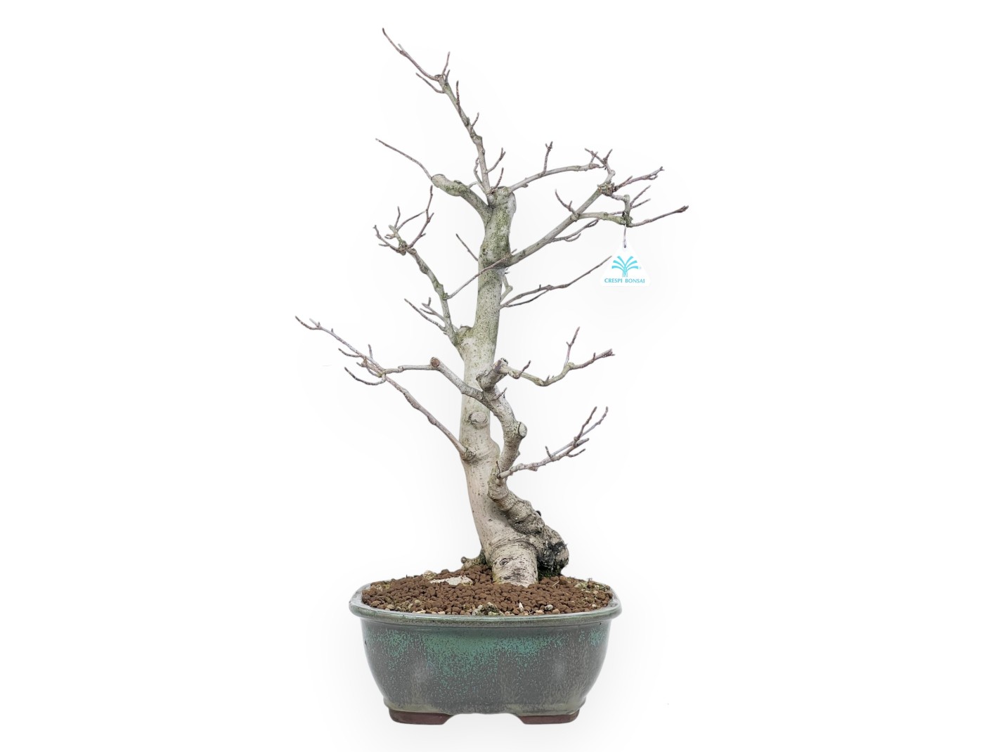 Der Magnolia kobus Bonsai ist eine blühende Laubbaumart, die im Frühjahr spektakuläre weiße Blüten mit einem zarten Duft hervorbringt. Die Blütezeit ist in der Regel zwischen April und Mai und bietet ein visuelles Spektakel, das die Faszination dieses Bonsai noch verstärkt. Das grüne Laub verfärbt sich im Herbst orangegelb und wirft im Winter seine Blätter ab. Er ist im Doppelstamm Stil (Sokan) modelliert und besteht aus zwei unterschiedlich hohen Stämmen, die der Pflanze Dynamik und Schönheit verleihen. Der rechteckige grün glasierte Steingut Topf, bildet er einen eleganten Kontrast zu den Farbtönen des Laubes und der Blüten und unterstreicht die Schönheit der Pflanze.