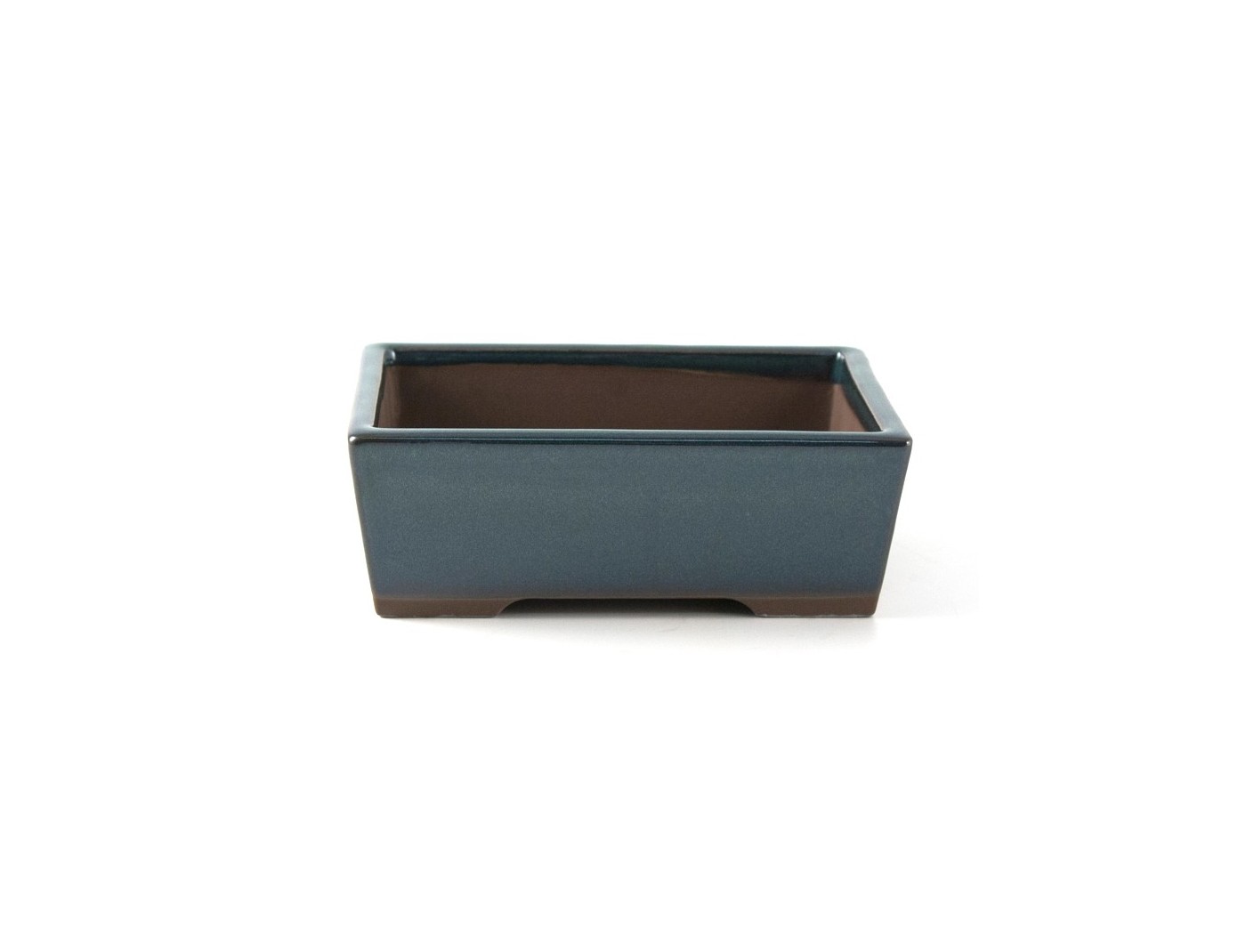 Japanischer Bonsai-Topf, rechteckig, aus grün glasiertem Steingut.