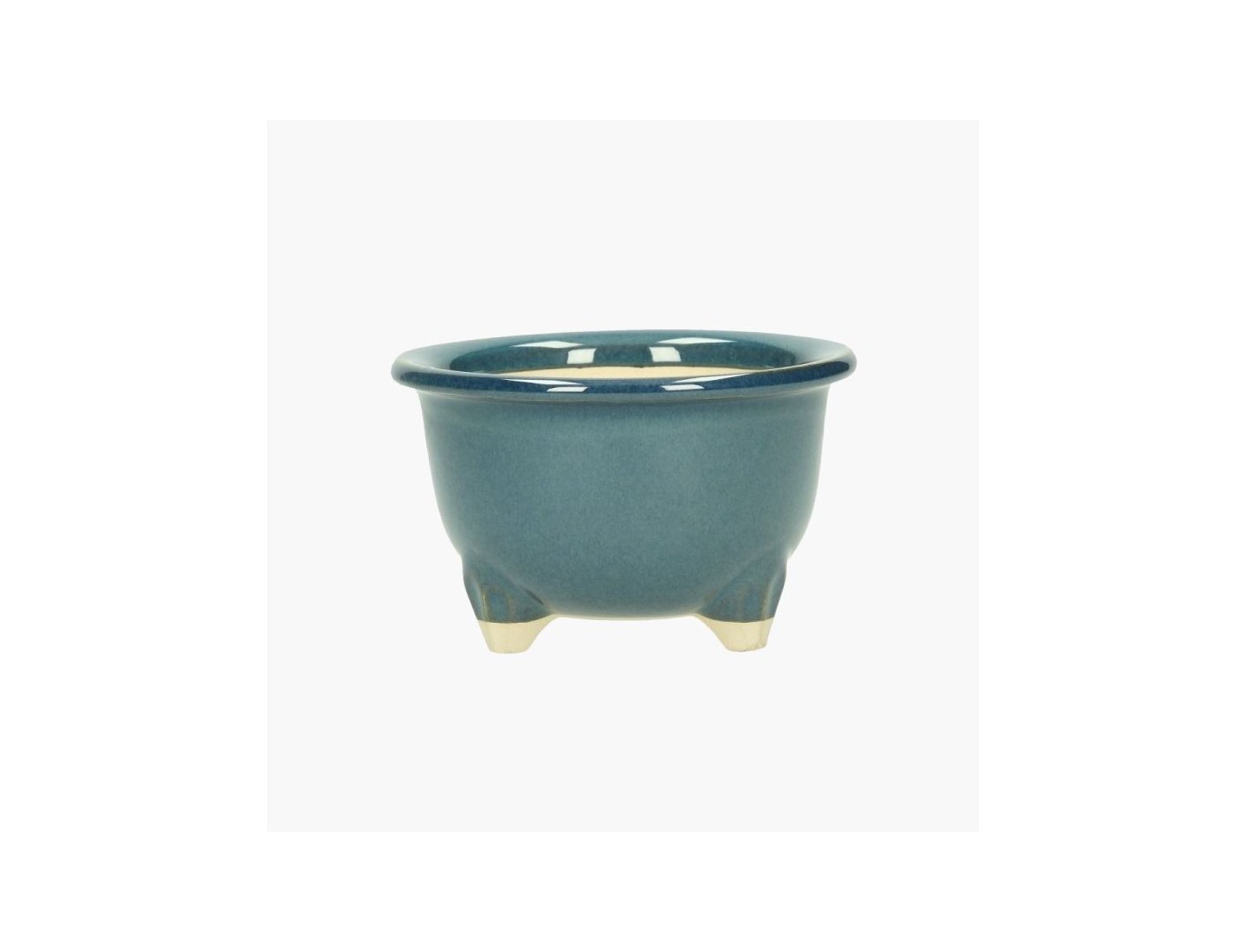 Japanischer Bonsai-Topf, rund, aus blau glasiertem Steingut.