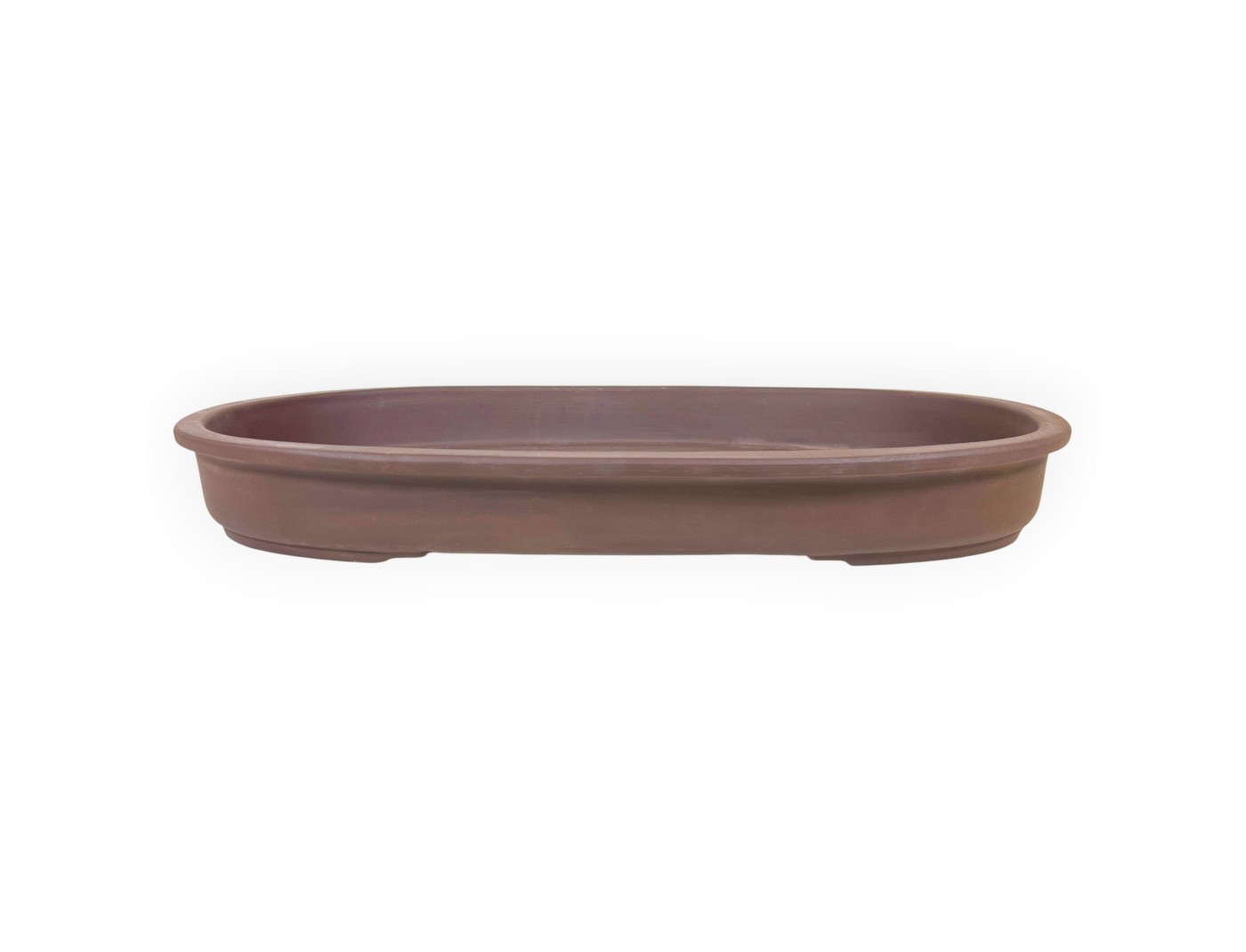 Japanischer Bonsai-Topf, oval, aus unglasierter Steingut.