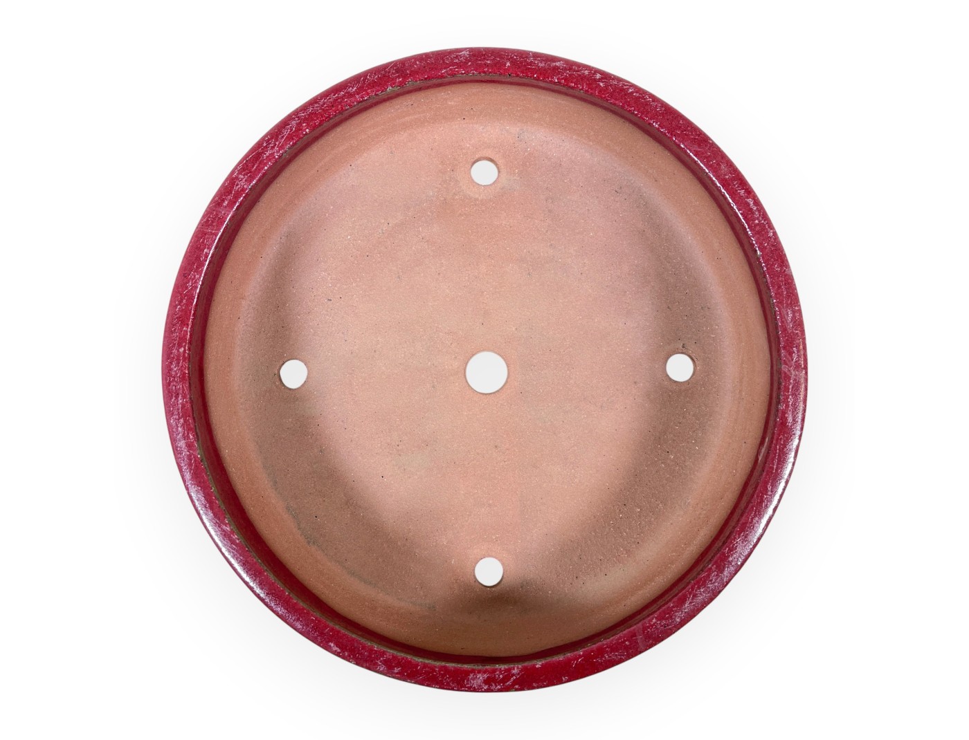 Chinesischer Bonsai-Topf, handgefertigt, rund, aus rot glasiertem Steingut.
