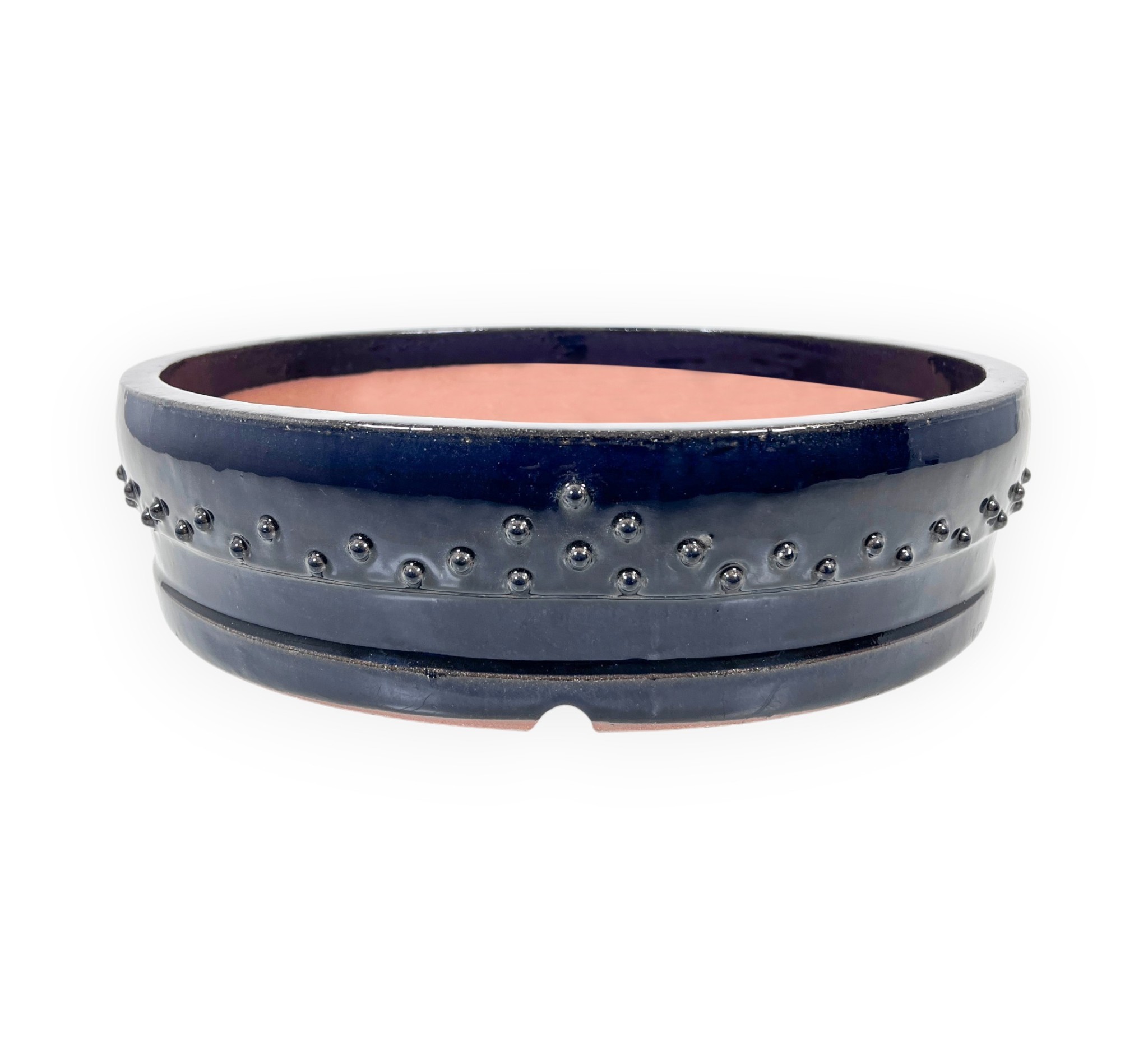 Die tiefblau Glasur verleiht ihm ein tiefes und elegantes Aussehen, das einen angenehmen Kontrast zu dem grünen Blattwerk bildet. Die rund Form, die Verzierung mit kleinen geprägten Kugeln in der Mitte des Umfangs und die gut definierten Füße, die Stabilität und Proportionen garantieren, verleihen einen Hauch von Raffinesse und Tradition, indem sie an den klassischen Stil der chinesischen Töpfe erinnern. Die fünf Entwässerungslöcher sorgen für eine gute Wasserableitung, die für die Gesundheit des Wurzelsystems unerlässlich ist. Der aus hochwertigem Steingut handgefertigte chinesische Topf vereint Robustheit, Wetterfestigkeit und Langlebigkeit. Ein elegantes und vielseitiges Gefäß, das sich perfekt für die Begleitung von laubbaum, blumen und Obstbonsais.