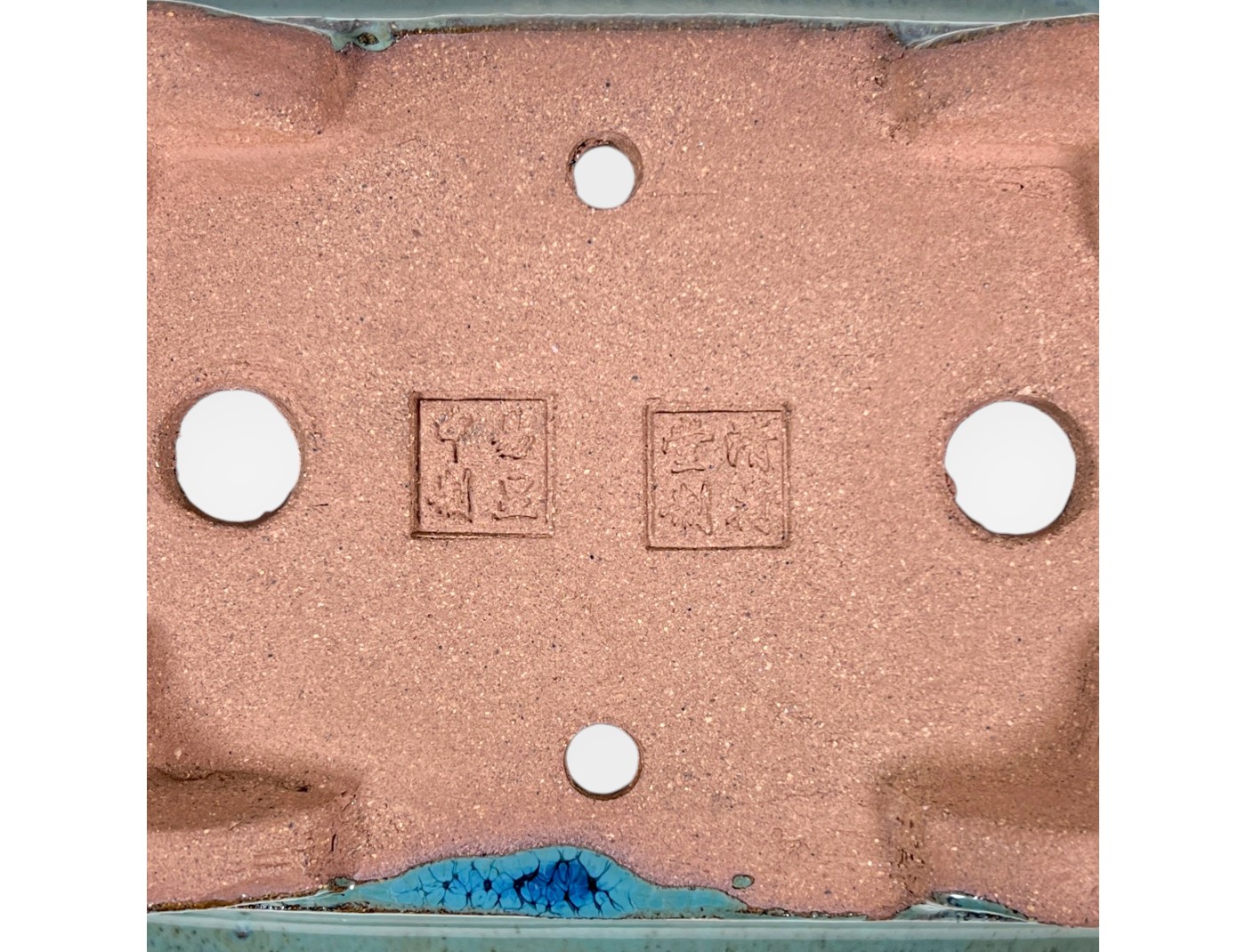 Chinesischer Bonsai-Topf, handgefertigt, rechteckig, aus türkis glasiertem Steingut.
