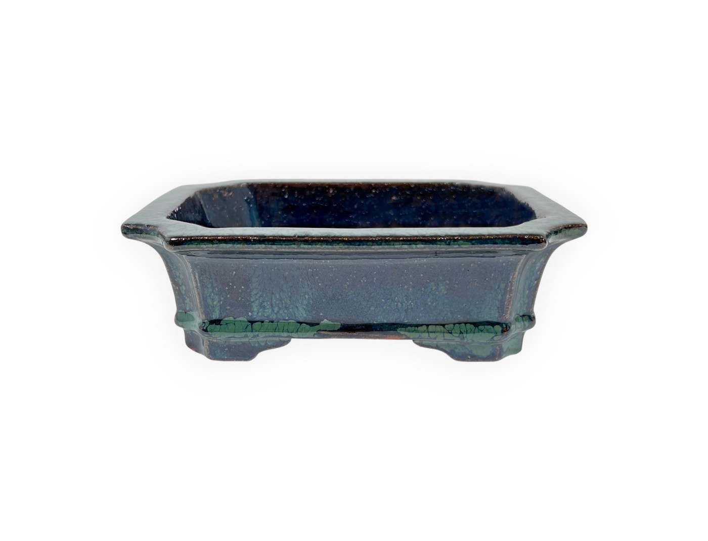 Chinesischer Bonsai-Topf, handgefertigt, rechteckig, aus grün glasiertem Steingut.