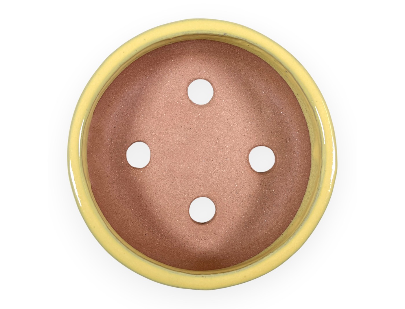 Chinesischer Bonsai-Topf, handgefertigt, rund, aus gelbe glasiertem Steingut.
