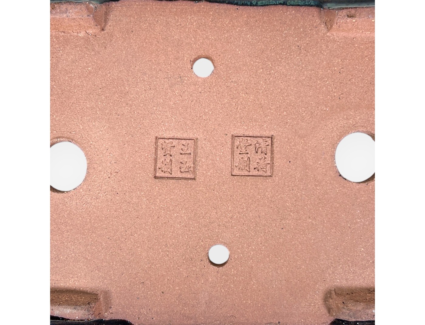 Chinesischer Bonsai-Topf, handgefertigt, rechteckig, aus grün glasiertem Steingut.