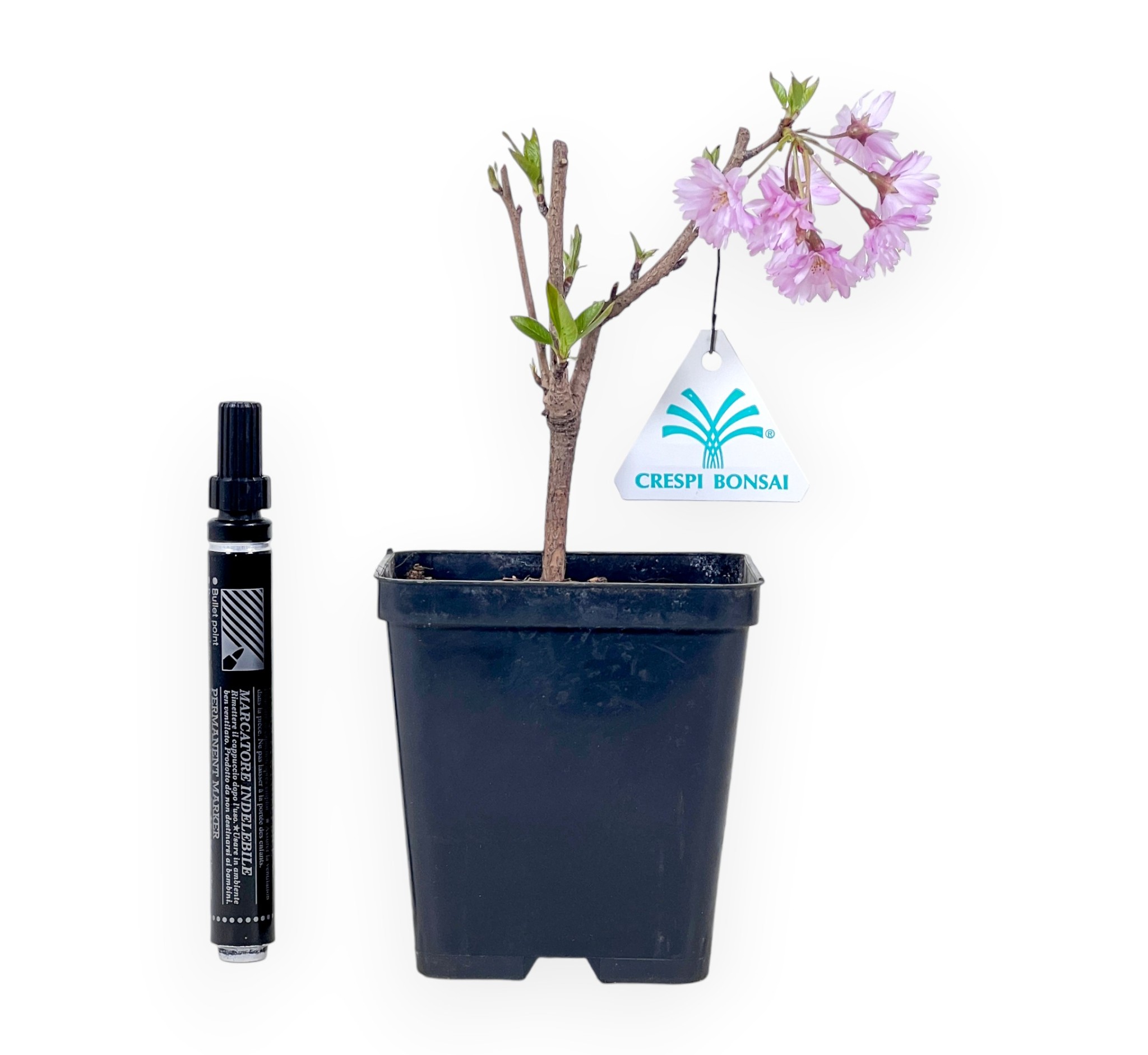 Pre-Bonsai von Prunus subhirtella 'Fukubana', einer sommergrünen Art, die für ihre elegante und üppige Frühlingsblüte in tiefen Rosatönen bekannt ist. Die zahlreichen kleinen Blüten, die an den noch kahlen Zweigen blühen, sorgen für einen auffallenden landschaftlichen Effekt und machen diese Art bei Liebhabern blühender Bonsai besonders begehrt. Es handelt sich um ein Arbeitsmaterial, das in einem Plastiktopf gezüchtet wird; perfekt für diejenigen, die ihren Bonsai nach allen Wachstums- und Trainingsphasen formen und personalisieren möchten.