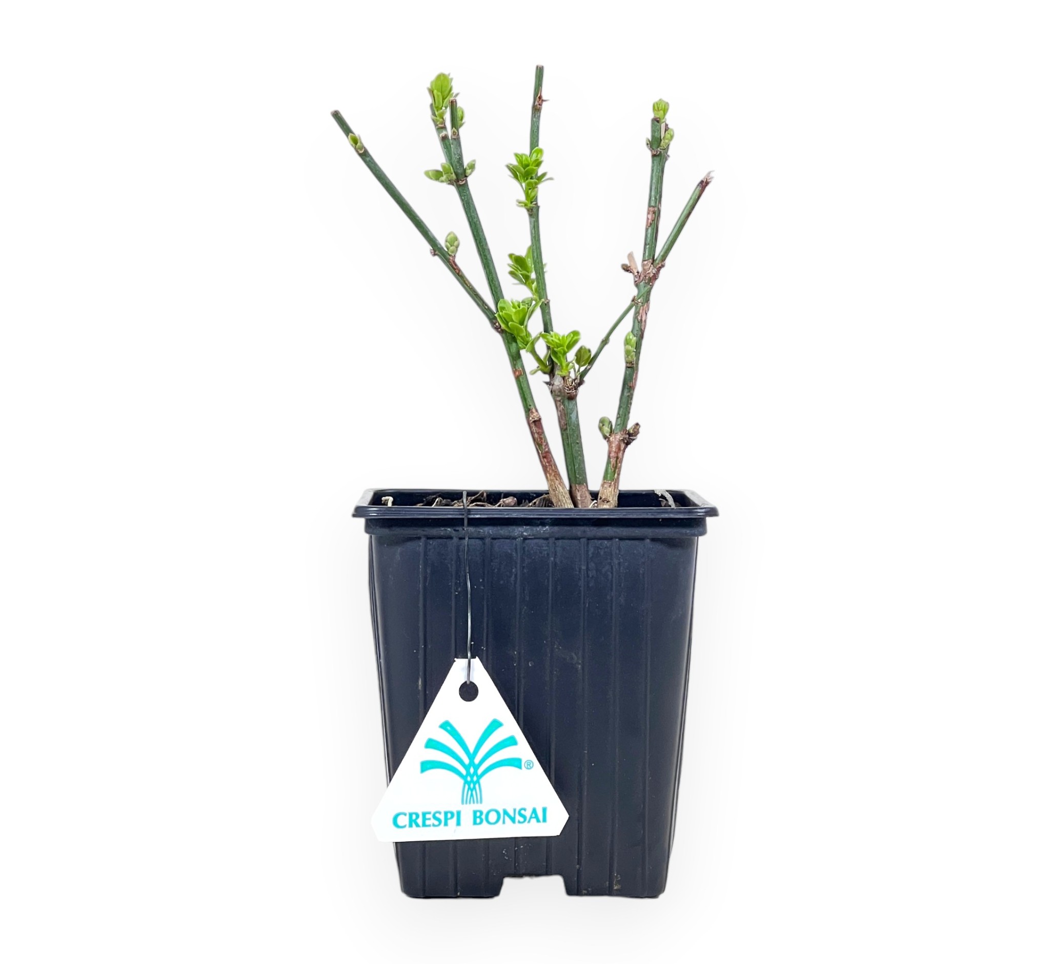 Jasminum nudiflorum ist ein sommergrüner Zierstrauch, der für seine frühe Winterblüte bekannt ist, bei der die Zweige mit kleinen gelben Blüten beleuchtet werden, bevor die Blätter erscheinen. Der rustikale und leicht zu kultivierende Strauch hat schlanke, bogenförmige Zweige, die sich auch hervorragend für die Bonsaikultur eignen. Perfekt, um in den kälteren Monaten für Farbe zu sorgen. Gezüchtet in einem quadratischen schwarzen Kunststofftopf.