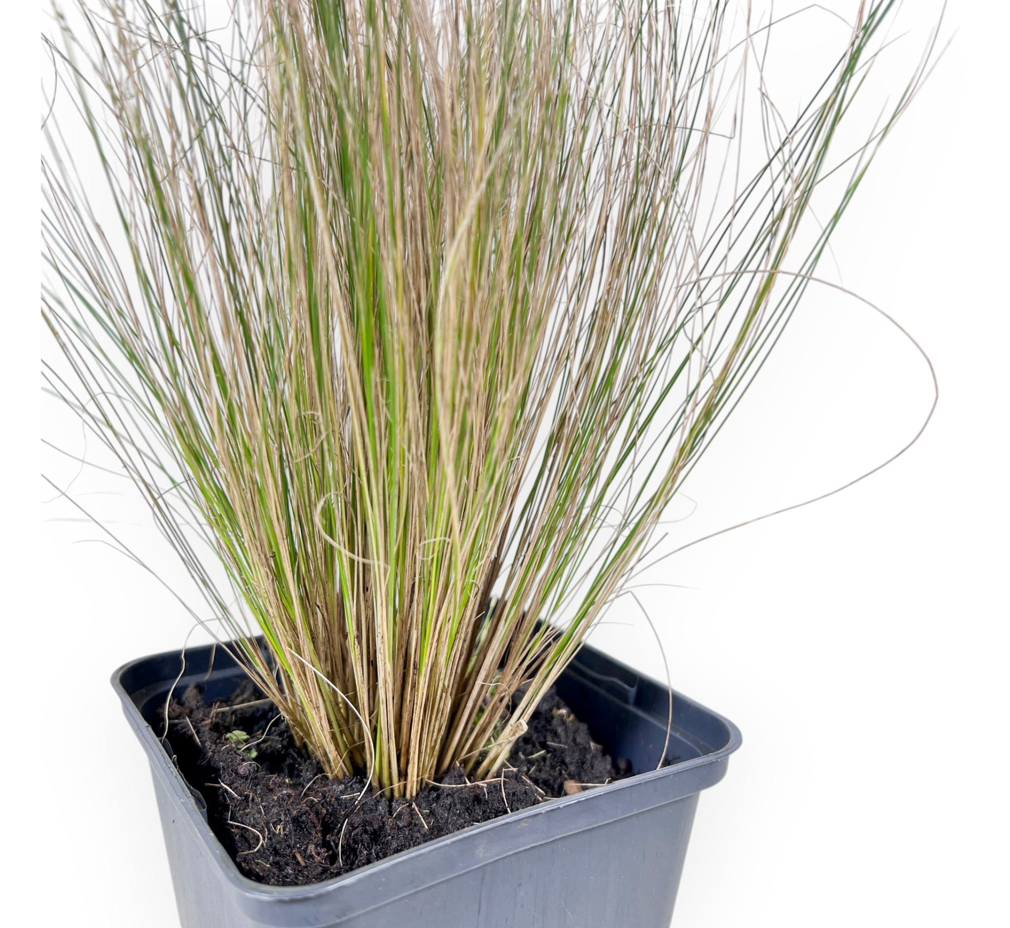 Hakonechloa halo Pflanze mit einer Höhe ohne Topf von 21,5 cm und einem Stammumfang von 1 cm. Die Pflanze wird in einem runden Kunststofftopf mit den Maßen Ø14x11,5 cm gezogen.