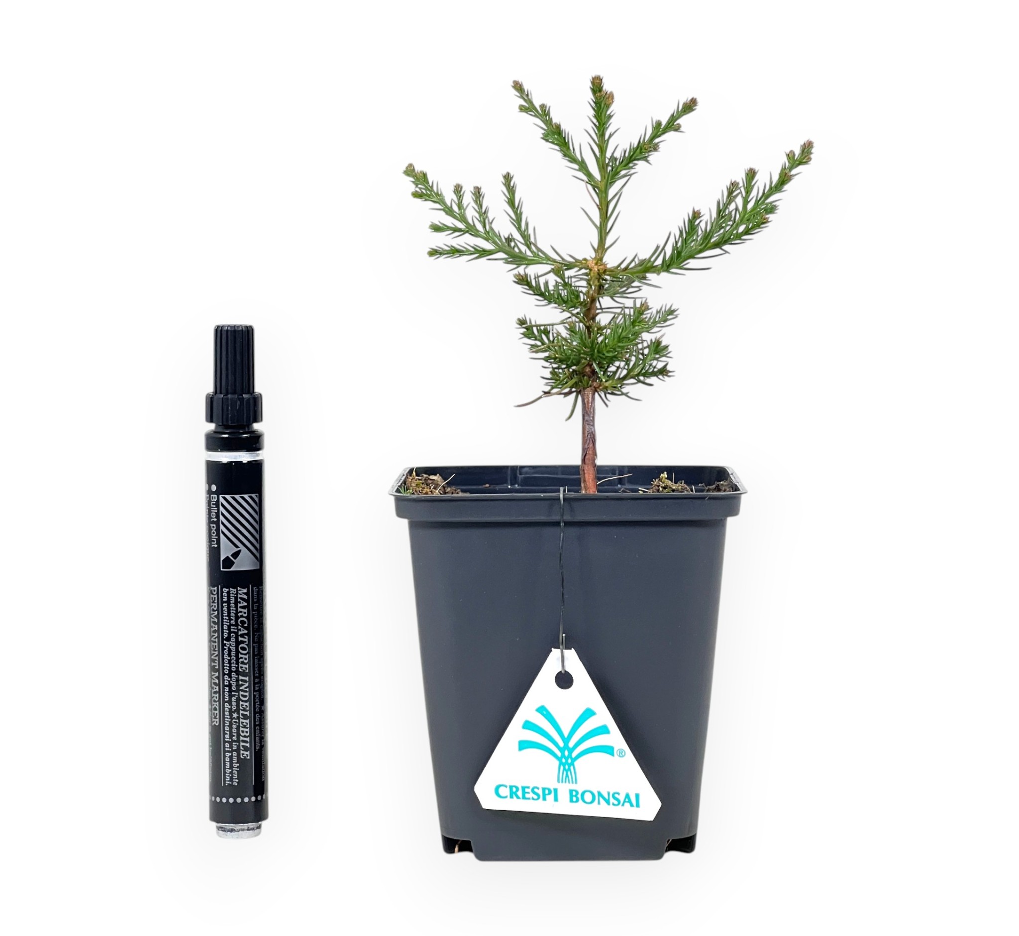 Die Arbeitspflanze von Sequoiadendron giganteum zeichnet sich durch eine Höhe ohne Topf von 10,5 cm und einen Stammumfang von 0,7 cm aus. Die Pflanze wird in einem quadratischen Plastiktopf mit den Maßen 9x9xH9,5 cm gezogen.
