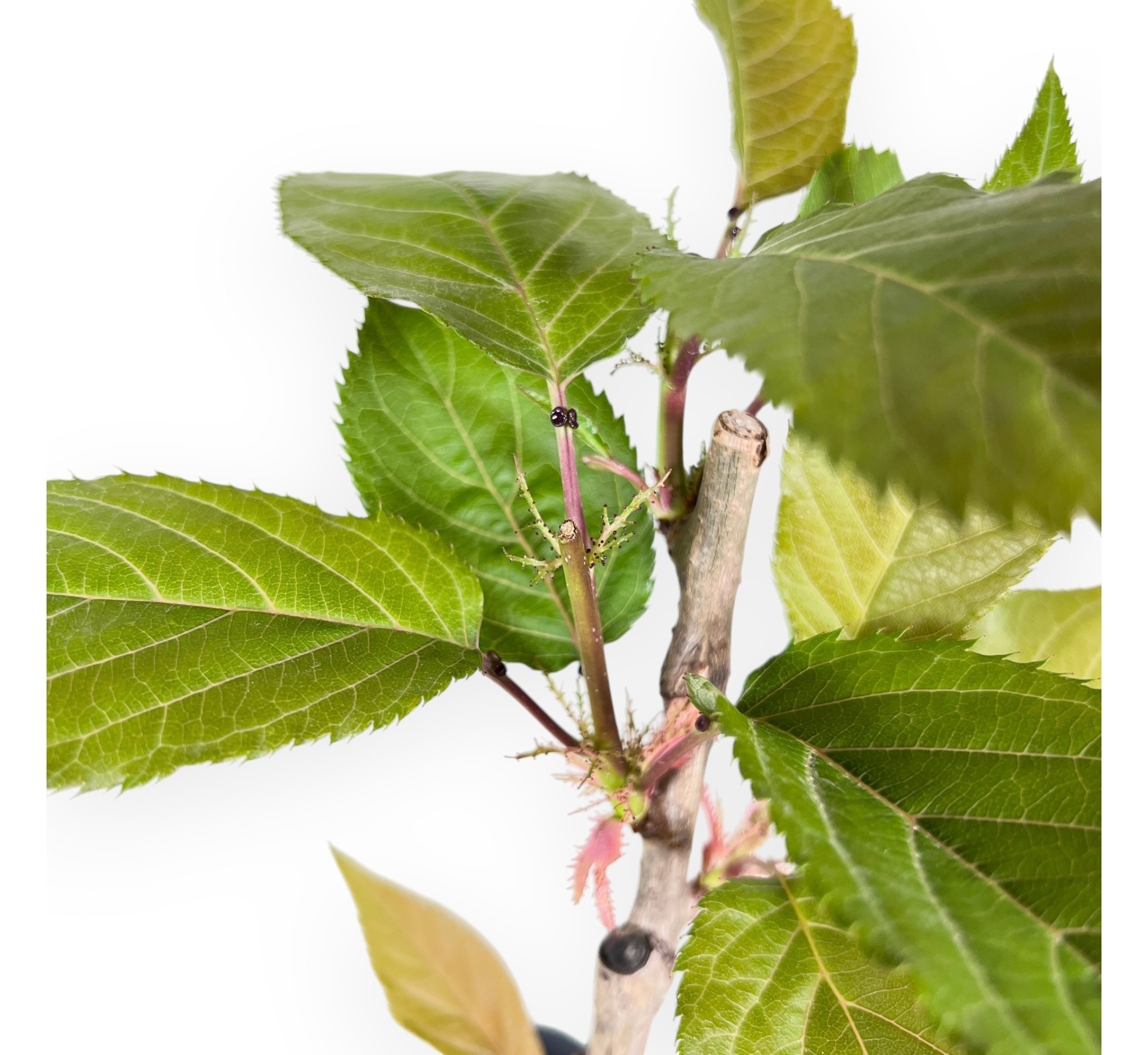 Arbeitspflanze von Prunus kanzan mit einer Höhe ohne Topf von 26 cm, und einen Stammumfang von 1,5 cm. Die Pflanze wird in einem quadratisch Kunststoff topf mit den Maßen 12x12xH19 cm gezogen.