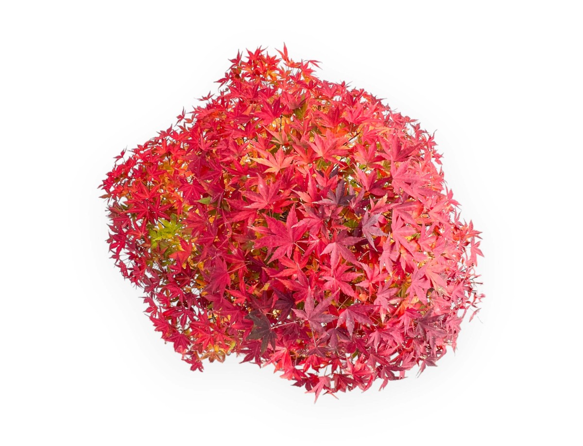 A unique specimen of Maple tree characterised by a height without pot of 64 cm, a trunk size of approx. 1-5 cm and a nebari of 38 cm. The plant is grown in an oval green glazed stoneware pot whose dimensions are 55x40xH6 cm.
