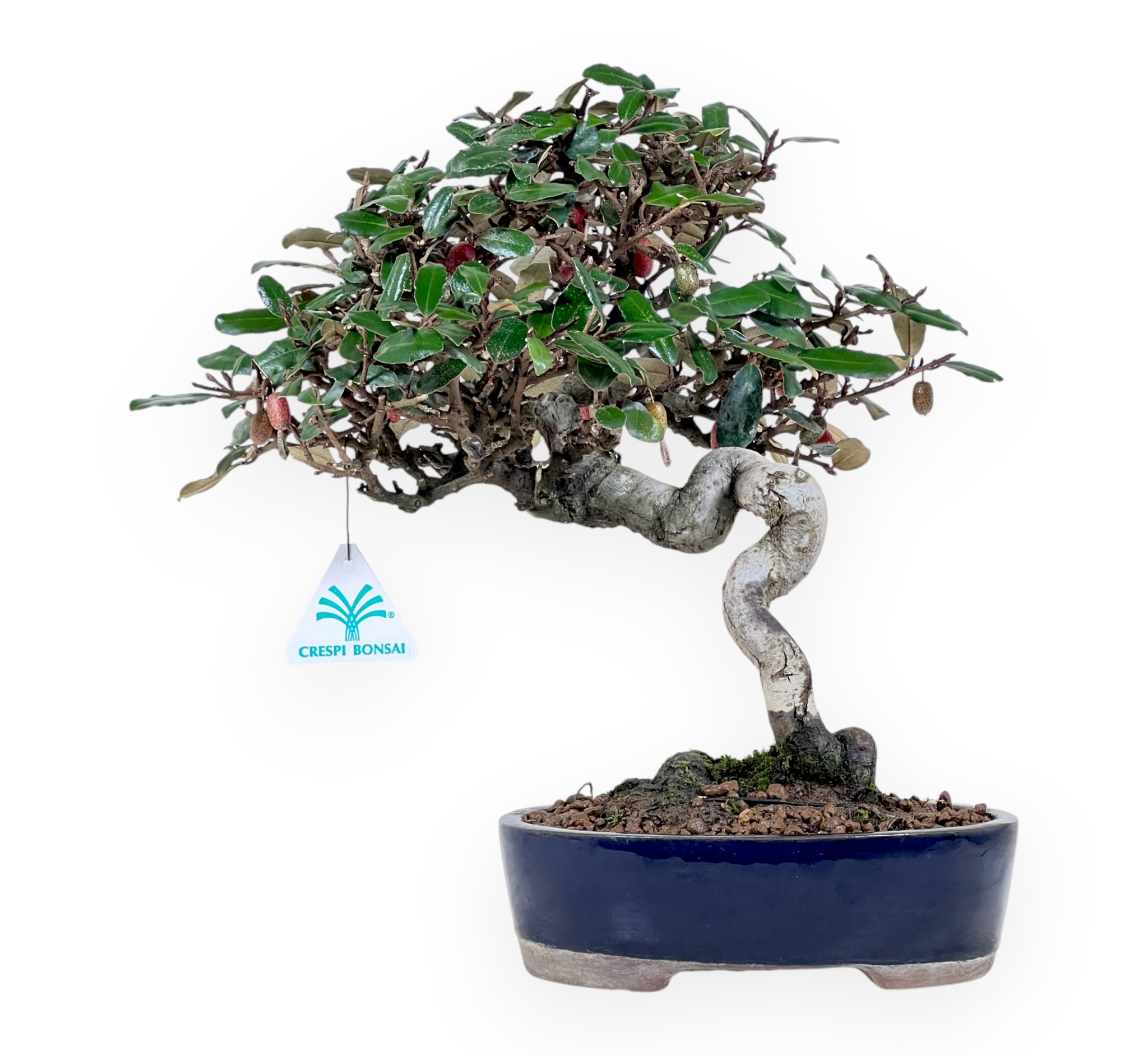 The Eleagnum, frequently cultivated in bonsai form, is popular not only as a fruit species, but also for its high bonsai potential. There are several species, which ripen their fruit from late spring to autumn and all of them are splendid training material. Of these, Elaeagnus pungens is robust and easy to train. If one considers the leaves, the fruits, the trunk, everything makes it a particularly suitable species for being made into a bonsai. Generally if you ask an amateur why he does not grow Eleagnus pungens, the most frequent answer refers to the difficulty of seeing them in fruit. However, they are trees with spectacular characteristics, such as the bark turning almost black as they mature, and if cared for properly, they also give great satisfaction in fruiting. In bonsai art, the styles they are best suited to are: informal upright, inclined, prostrate and cascading.
