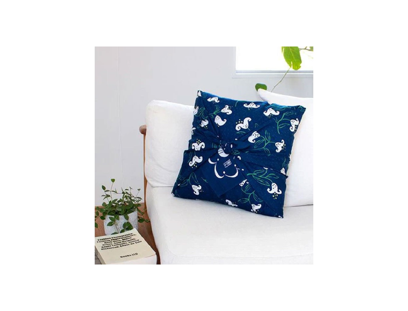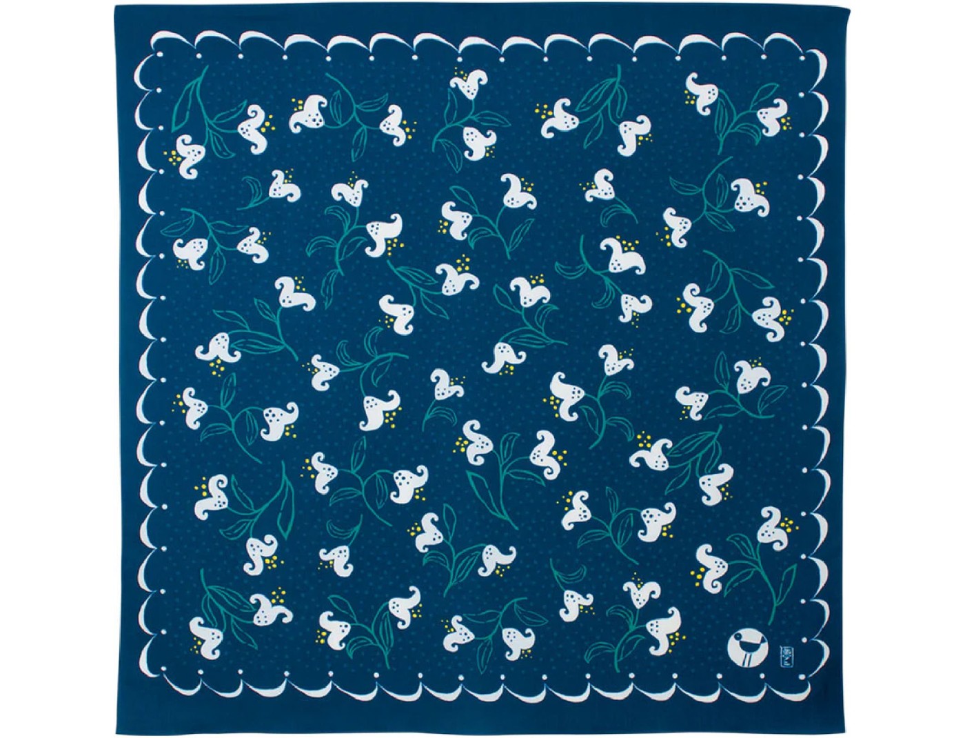 This furoshiki was designed by Yumeji Takehisa, a popular Japanese painter and designer in early 1900’s. This furoshiki is based on a book cover lily design by Yumeji. Yumeji’s works use dynamic patterns and unique hues and tints from everyday motifs.The bird symbol on the bottom right and the lines around the edge are also motifs designed by Yumeji. It appears in the knot when it is wrapped. The bird symbol is placed so that it can be seen when wrapping a gift box. The lily expresses the neatness by an old Japanese expression. Old Japanese expressions refer to the neatness of lilies. Also in Europe, it is a symbol of peace, purity and freedom. It's a popular flower for wedding bouquets as well. It would be lovely as a gift.