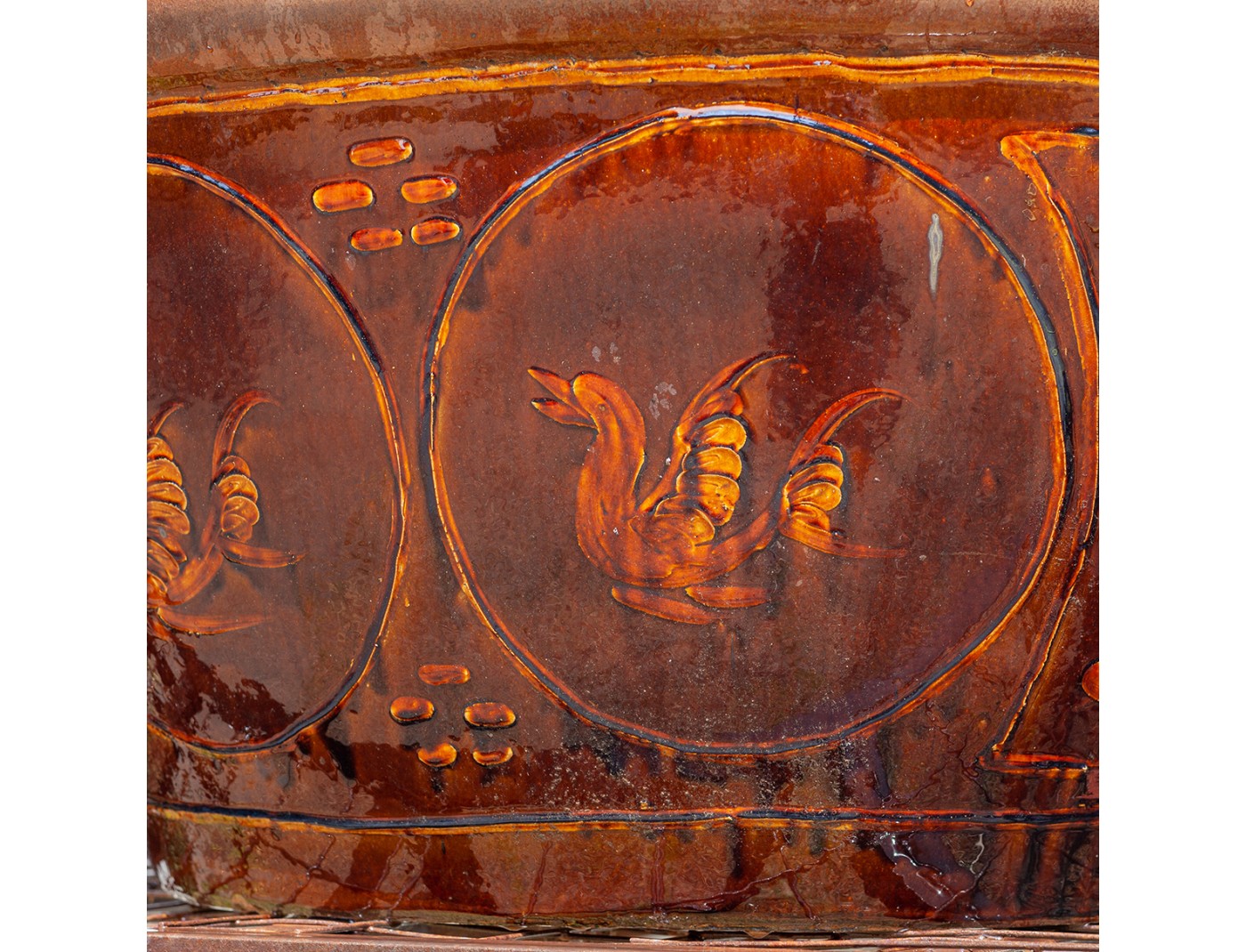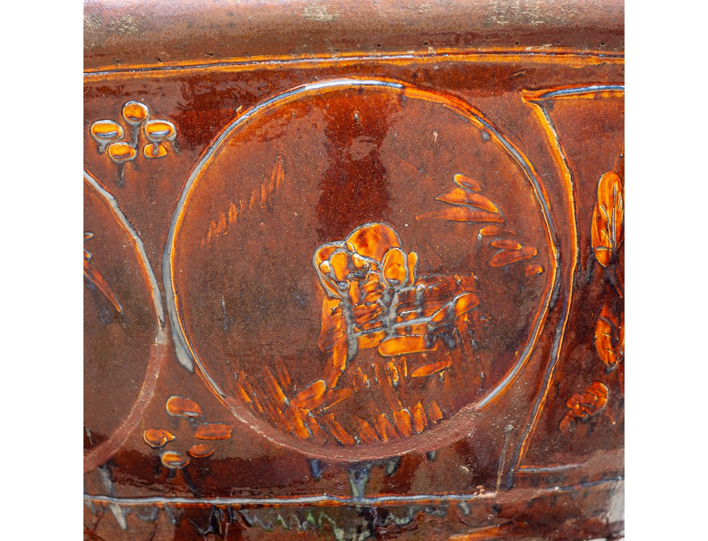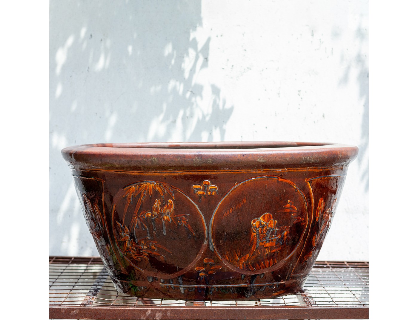 Decorated glazed oval stoneware water garden container
