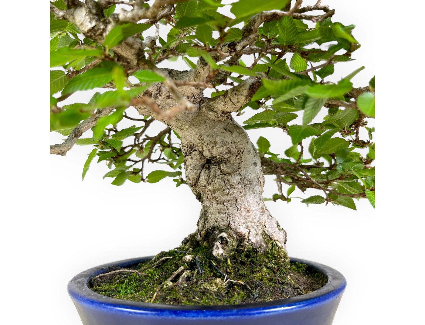Deciduous bonsai, in oval blue glazed stoneware pot