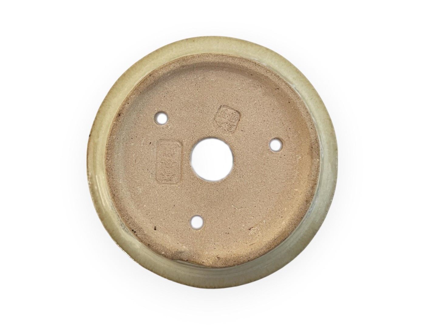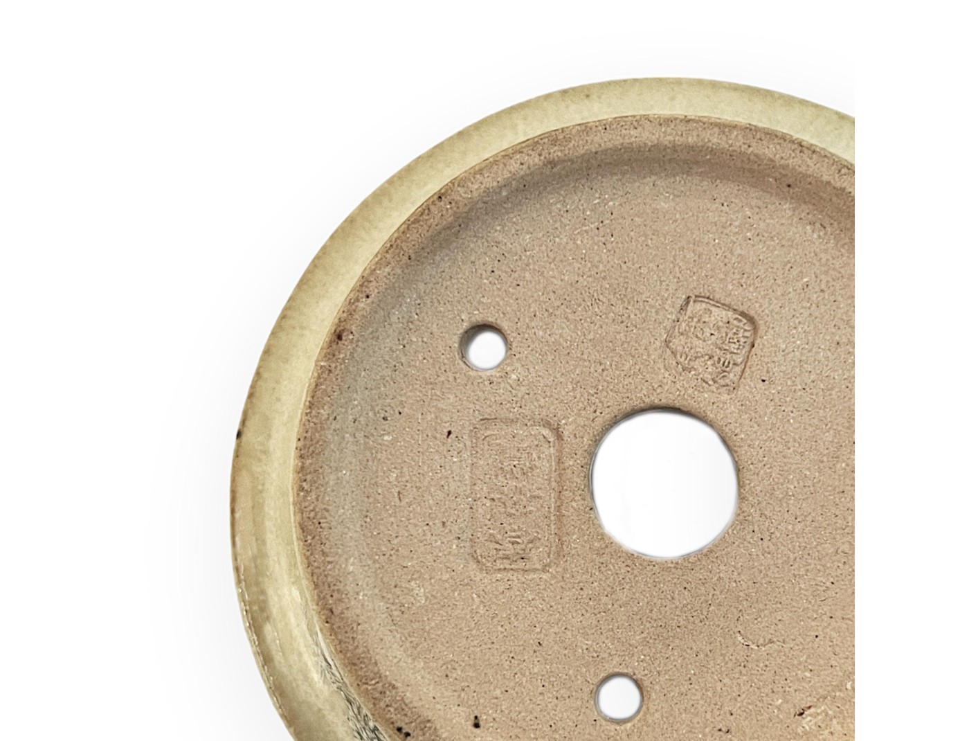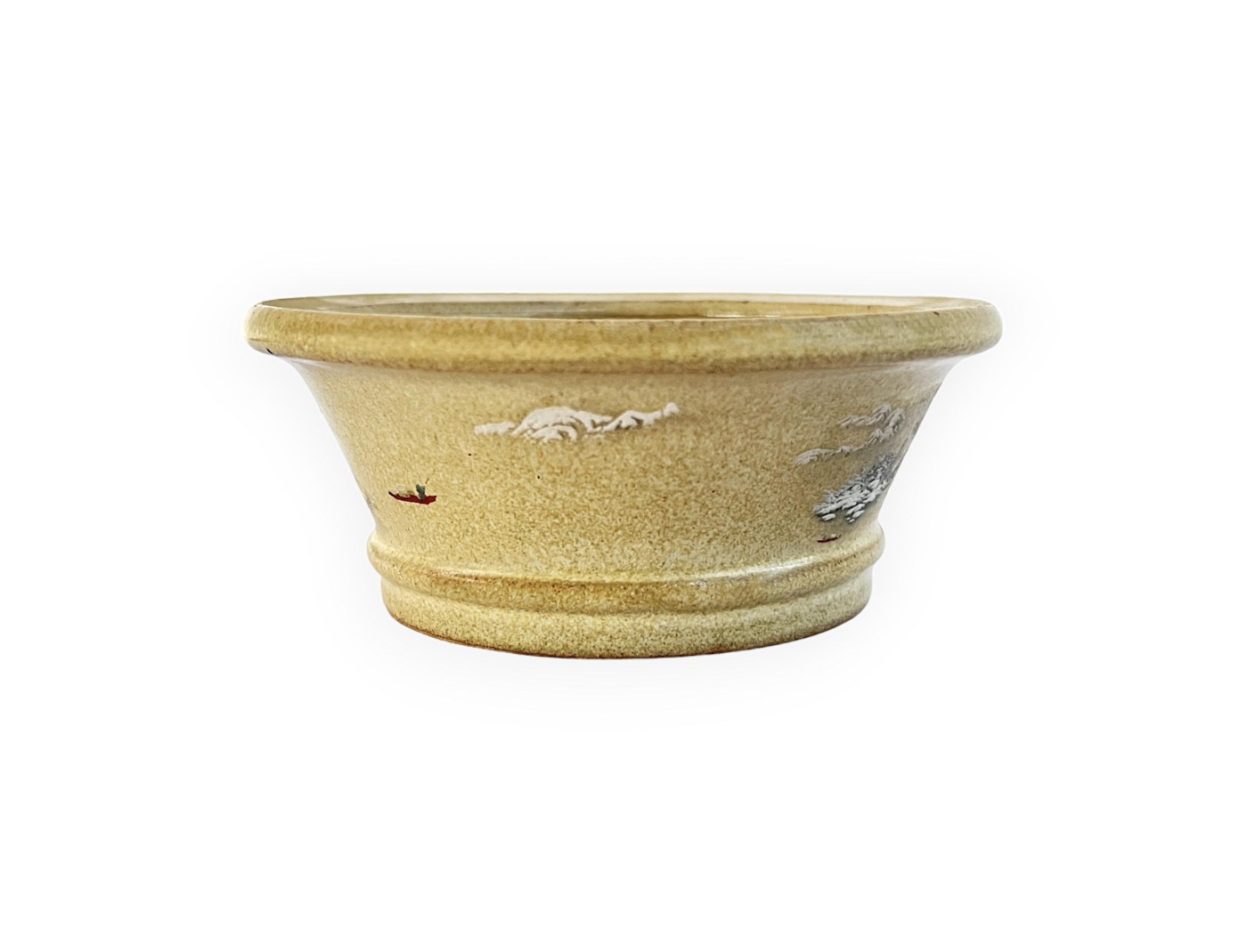 Round hand-painted beige glazed stoneware pot