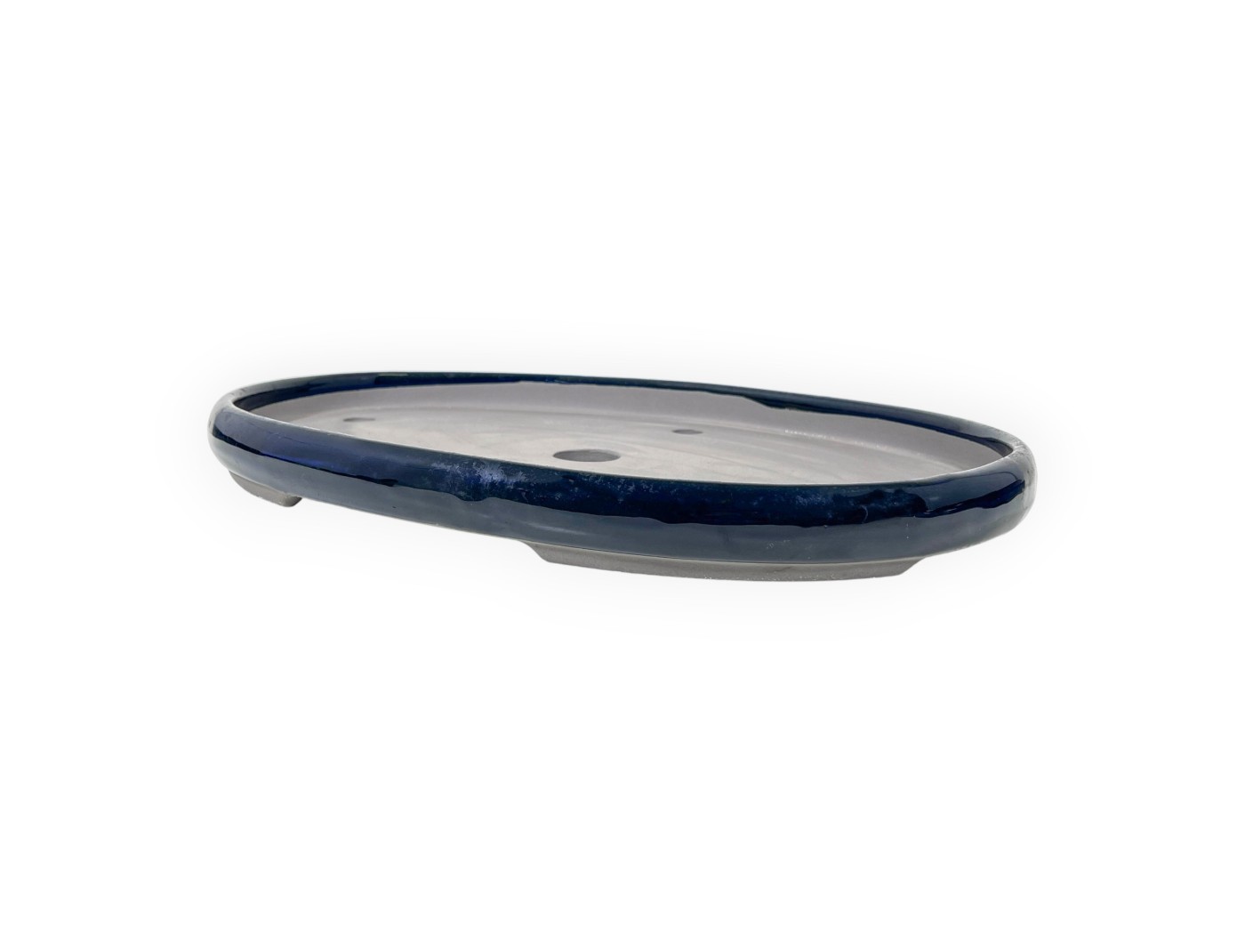 Japanese bonsai pot, oval, made of blue glazed stoneware.