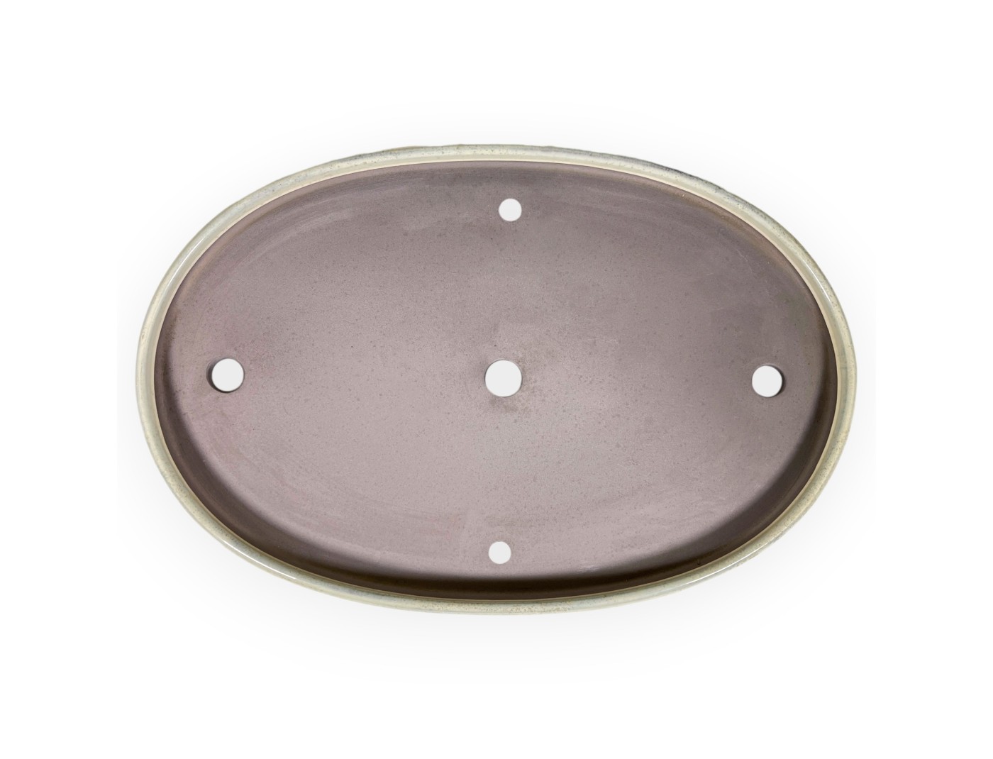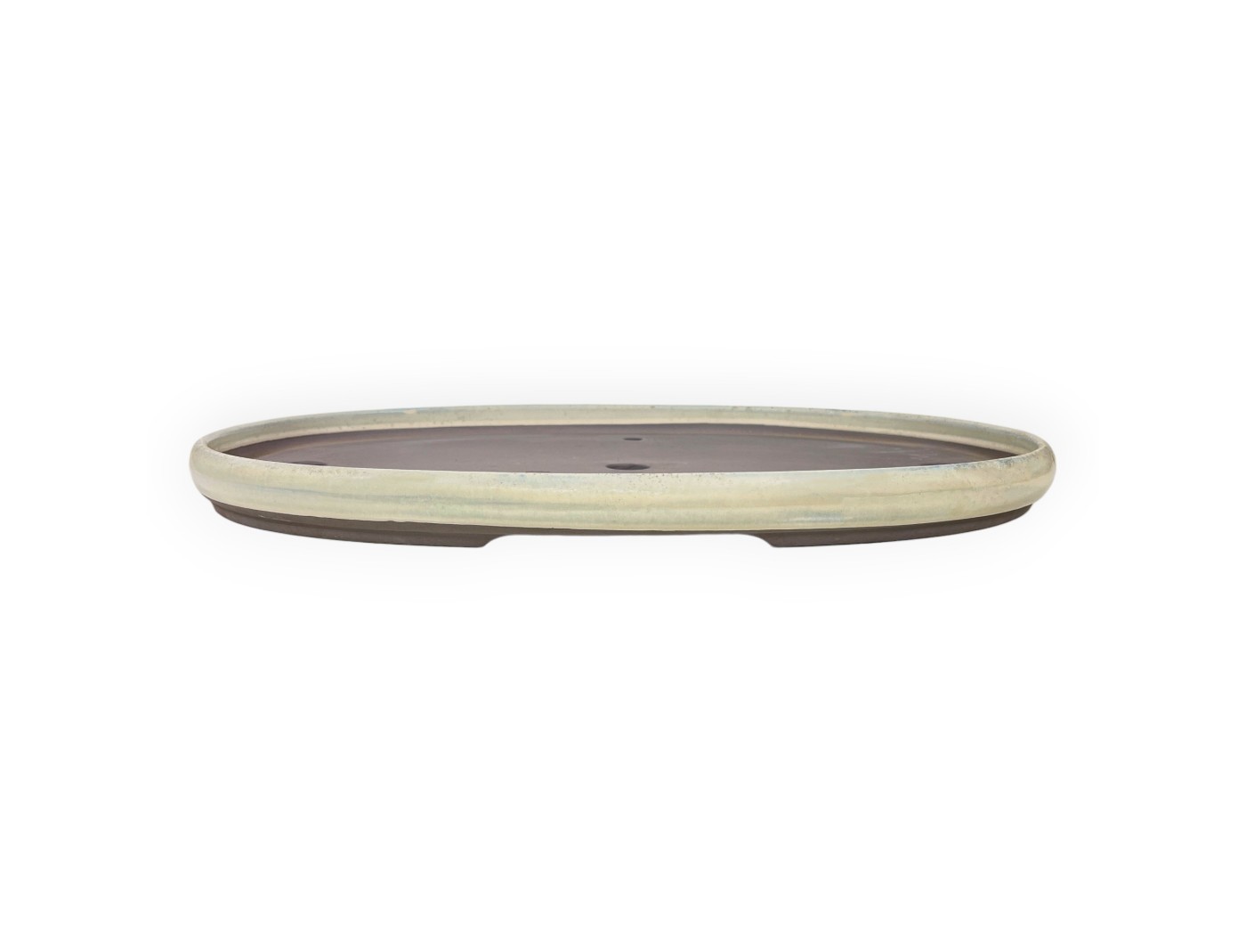 Japanese bonsai pot, oval, made of cream glazed stoneware.