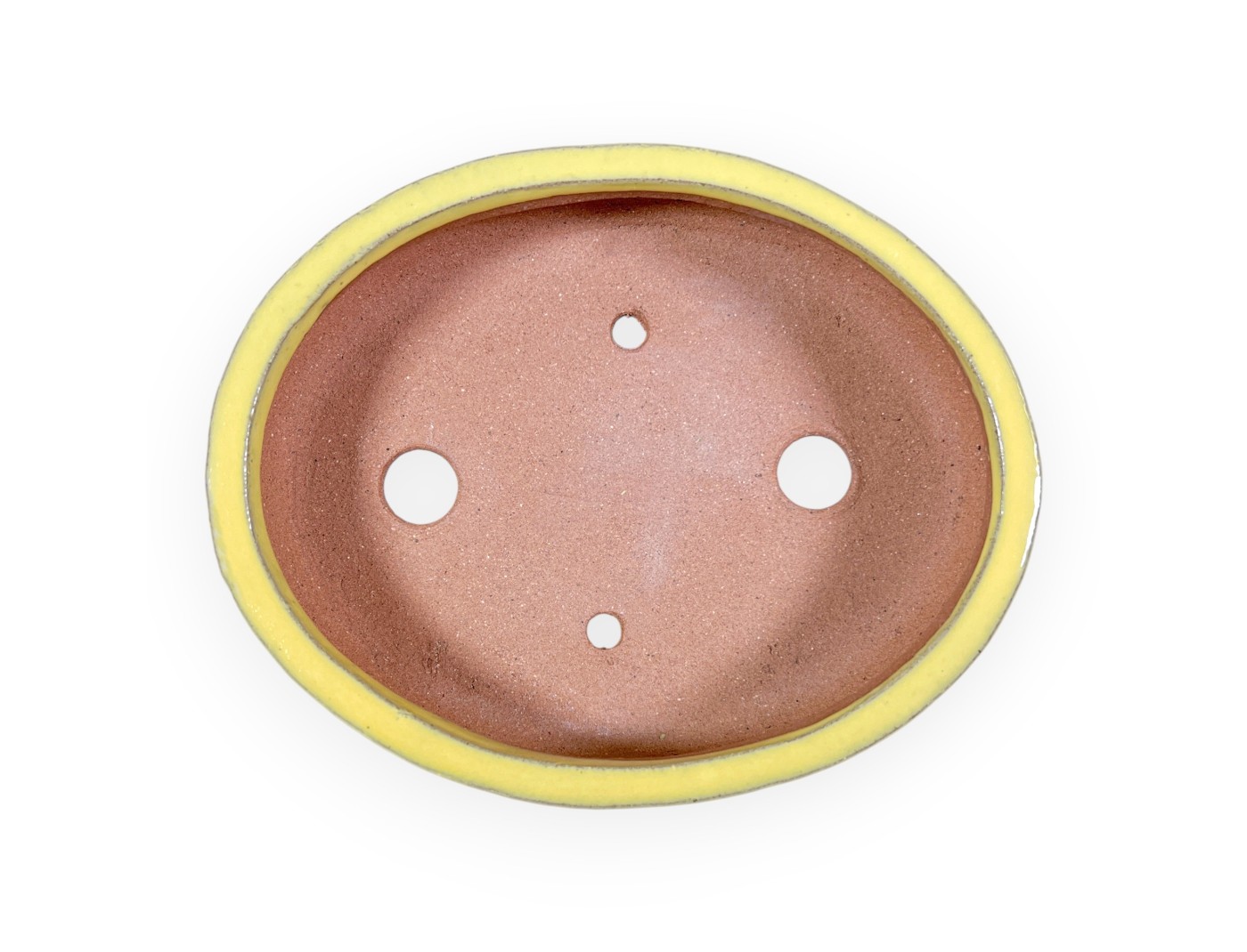 The bright yet delicate yellow glaze gives the pot personality without overshadowing the plant. It is mainly suitable for bonsai with dark foliage or compositions where you want to emphasize the container as a decorative element. The well-balanced oval shape, with an upper rim that extends slightly outwards and a curved profile, enhances the beauty of the bonsai by giving it a harmonious appearance. The base of the pot has small feet, decorated with small curves reminiscent of a natural element from the Oriental design tradition, which improve stability and allow proper drainage. The four drainage holes ensure proper water drainage, which is essential for the health of the root system. Handmade from high-quality stoneware, this Chinese pot combines robustness, weather resistance and durability. A lively pot, perfect for accompanying deciduous and deciduous evergreen bonsai.