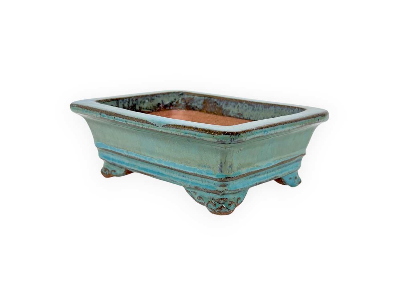 Chinese bonsai pot, handmade, rectangular, made of turquoise glazed stoneware.