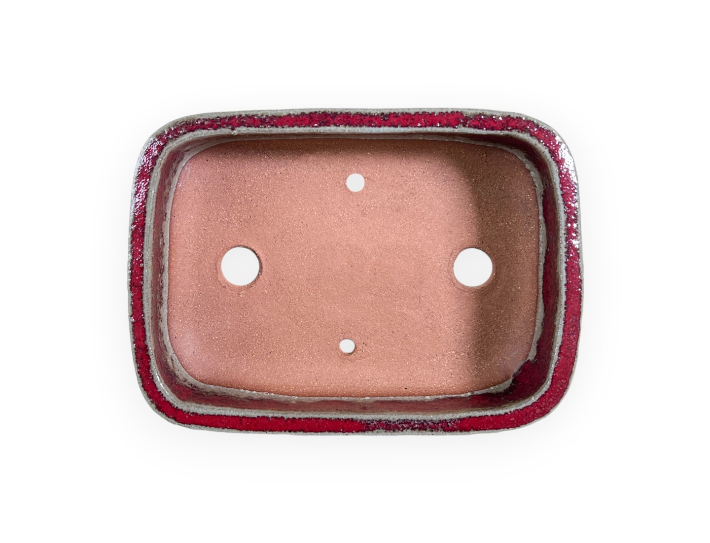 The deep red glaze, with natural shades that fade into light gray and sand tones, enhances and highlights the beauty of the bonsai. The rectangular shape with low, discreet feet ensures stability and proportion, adding a touch of refinement and tradition by recalling the classic style of Chinese pots. The four drainage holes ensure proper water drainage, which is essential for the health of the root system. Handmade from high-quality stoneware, this Chinese pot combines robustness, weather resistance and durability. An elegant and versatile pot, perfect for accompanying deciduous, flower and fruit bonsai.