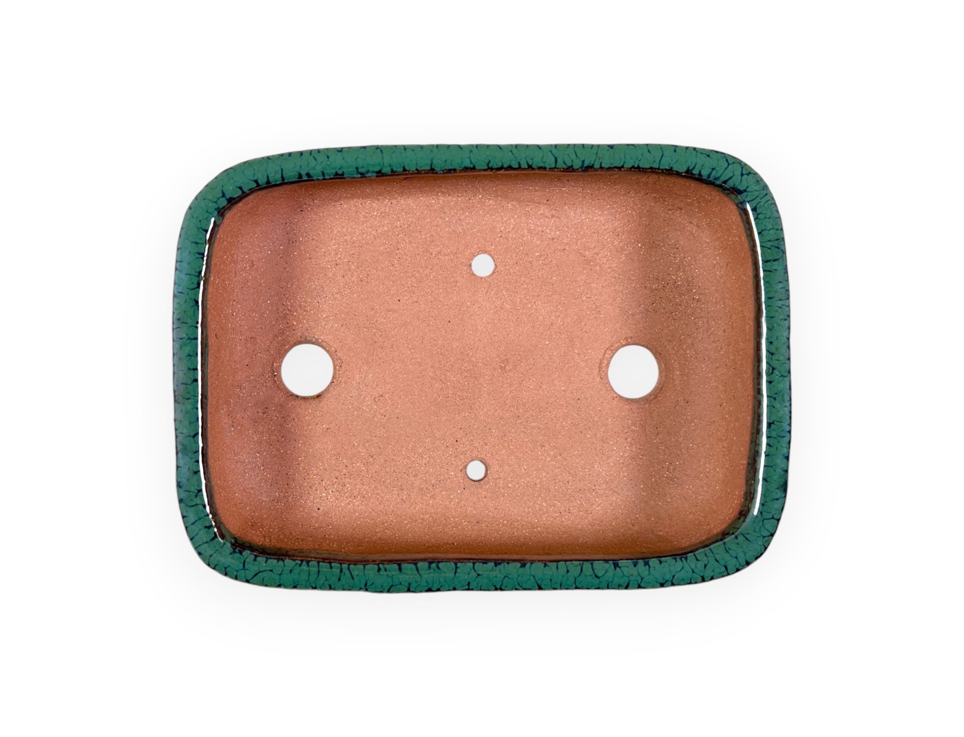 Chinese bonsai pot, handmade, rectangular, made of green glazed stoneware.