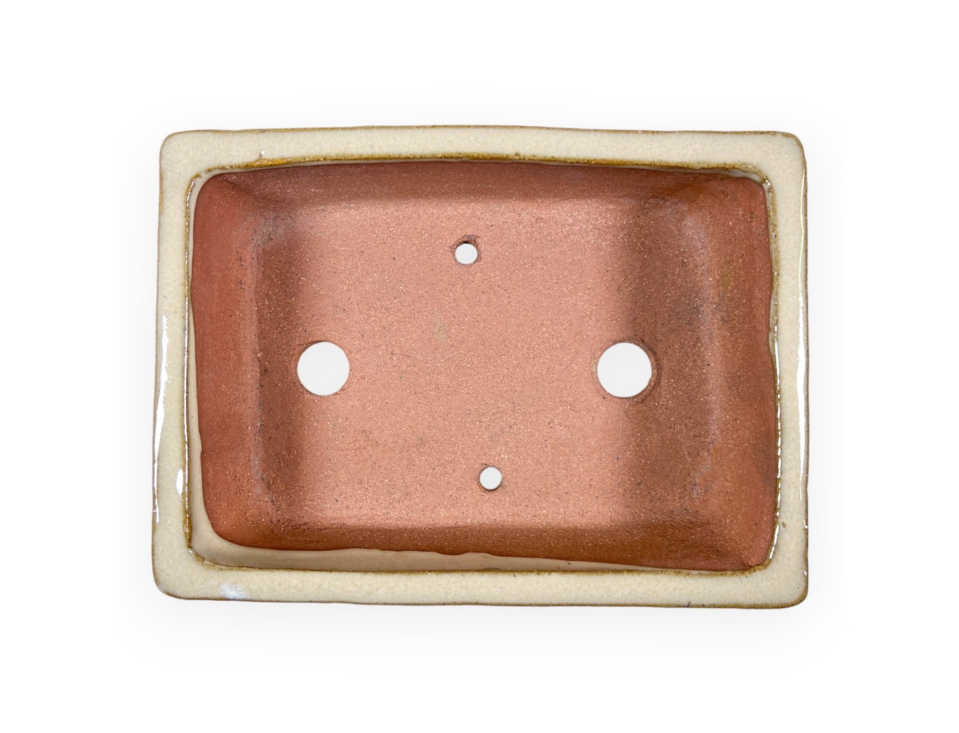 Chinese bonsai pot, handmade, rectangular, made of cream glazed stoneware.