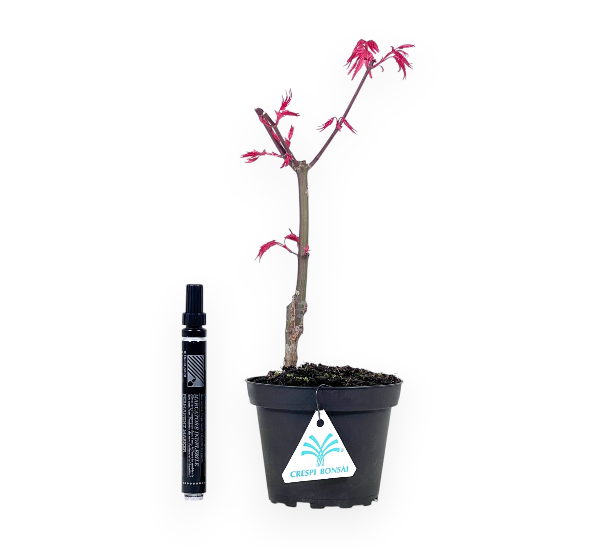Maple work plant characterised by a height without pot of 21 cm and a trunk size of 1.5 cm. The plant is grown in a round plastic pot whose dimensions are Ø10xH8 cm.