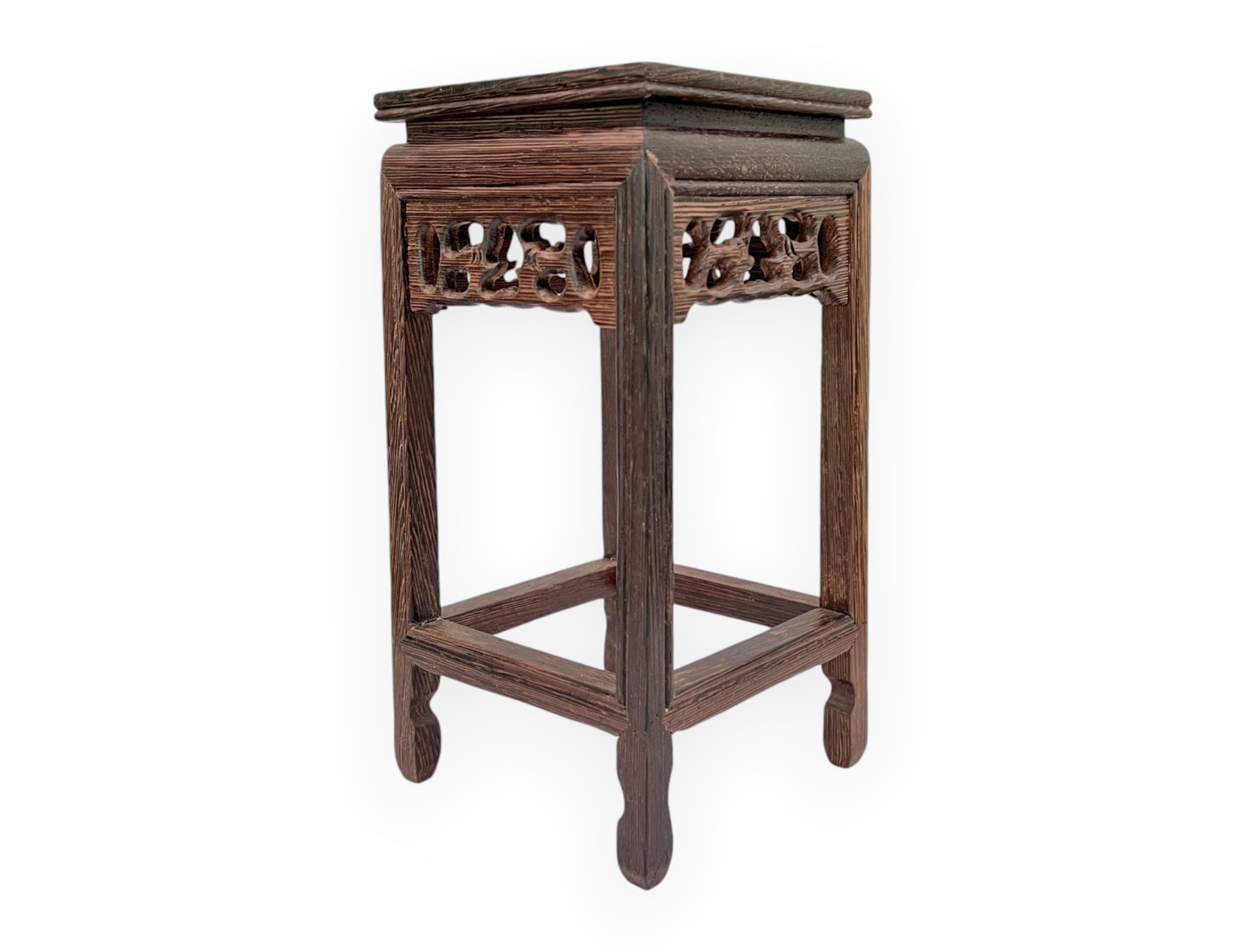 The table is an indispensable element of the display and allows you to enhance and give importance to the main element: the bonsai. Raising the bonsai to make it stand out from the display surface, placing the elements that compose it on different levels. When choosing the appropriate table it is good to consider the proportions which must be 1/3 or even 2/3 larger than the pot. Avoid allowing the height of the vase to be the same as that of the table feet and ensuring that the color resembles that of the vase. The color must be chosen in harmony with the plant and the shape will also be lighter for essential styles such as bunjin and more massive for bonsai of more elaborate styles and larger dimensions.