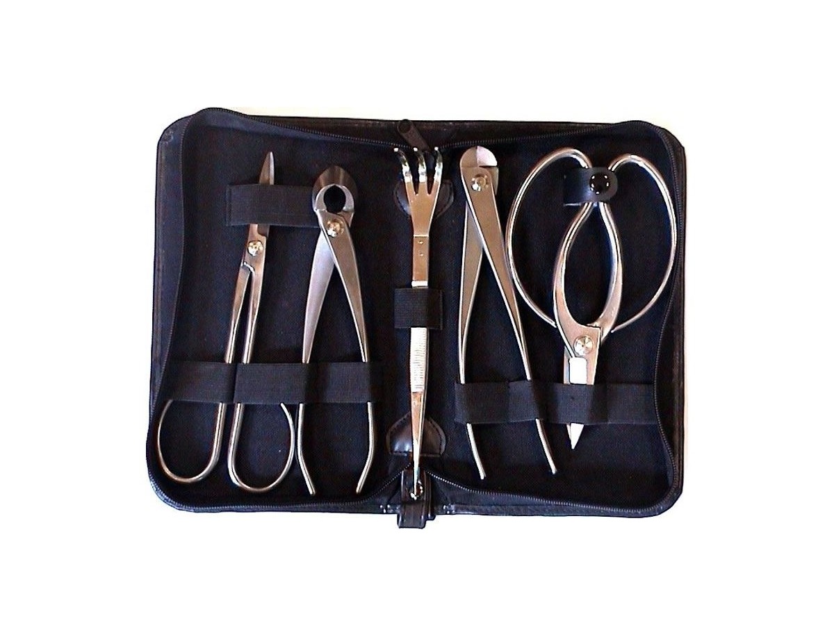 5 Pieces Set - One set contains: - 1 Root Scissors - 1 Wire Cutter - 1 Rake with Tweezers - 1 Pruning Cutter - 1 Pruning Scissors - Material: Stainless Steel - Origin: Japan