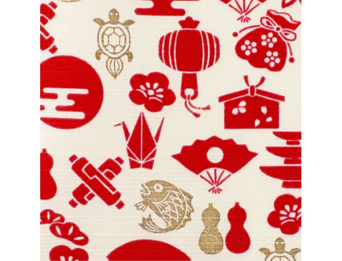 Símbolos auspiciosos japoneses para el nuevo año 2025: crema, rojo, dorado y verde