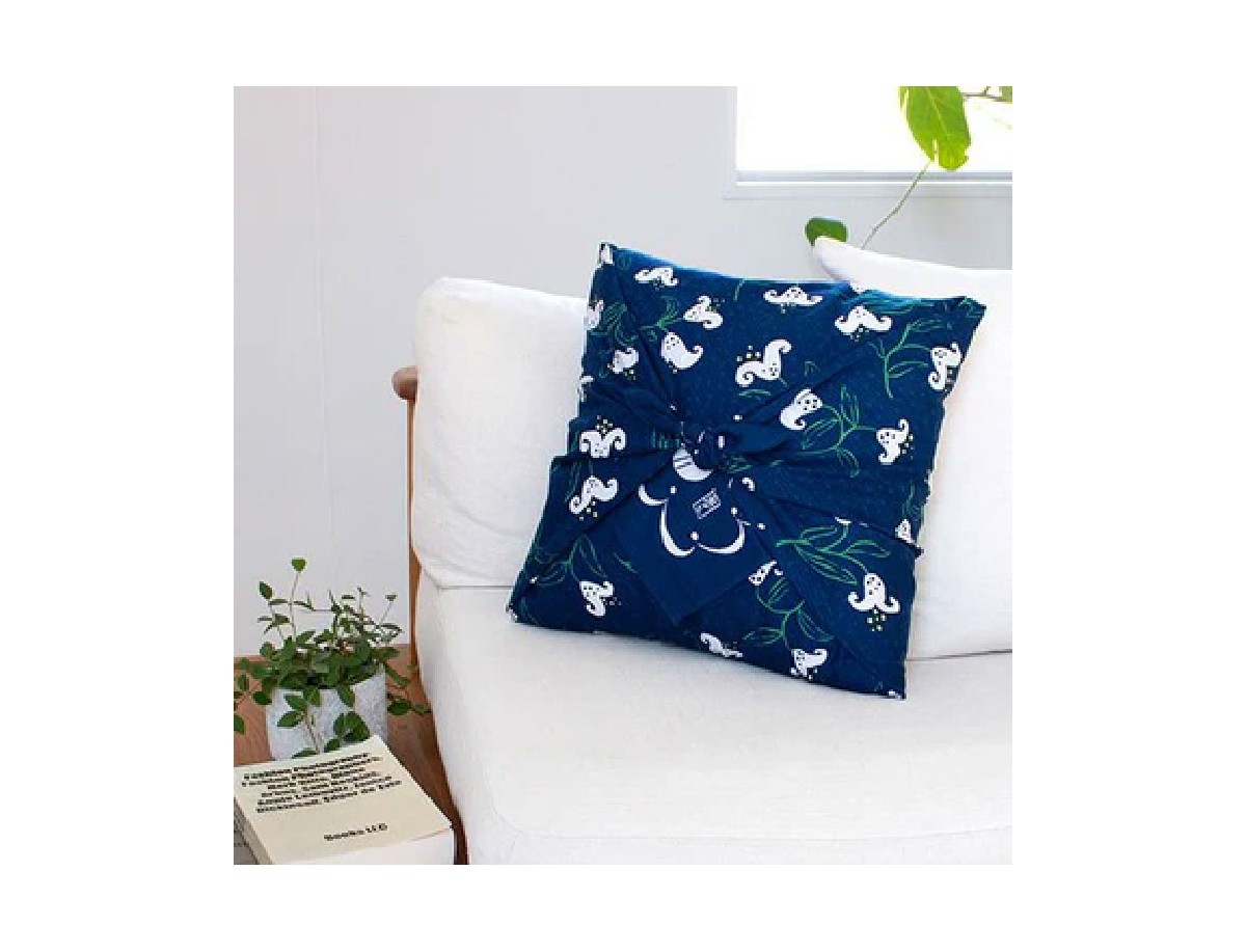 Este furoshiki fue diseñado por Yumeji Takehisa, un famoso pintor y diseñador japonés a principios del siglo XX. Este furoshiki se basa en el diseño de lirio de la portada del libro de Yumeji. Las obras de Yumeji utilizan patrones dinámicos y tonos y tintes únicos que se relacionan con motivos relacionados con la vida cotidiana. El símbolo del pájaro en la parte inferior derecha y las líneas alrededor del borde también son patrones diseñados por Yumeji. El símbolo del pájaro está colocado de manera que se pueda ver al envolver una caja de regalo; aparece en el nudo. El lirio expresa limpieza según una antigua expresión japonesa. Incluso en Europa es un símbolo de paz, pureza y libertad. También es una flor popular para los ramos de boda. Sería un regalo de gran significado.