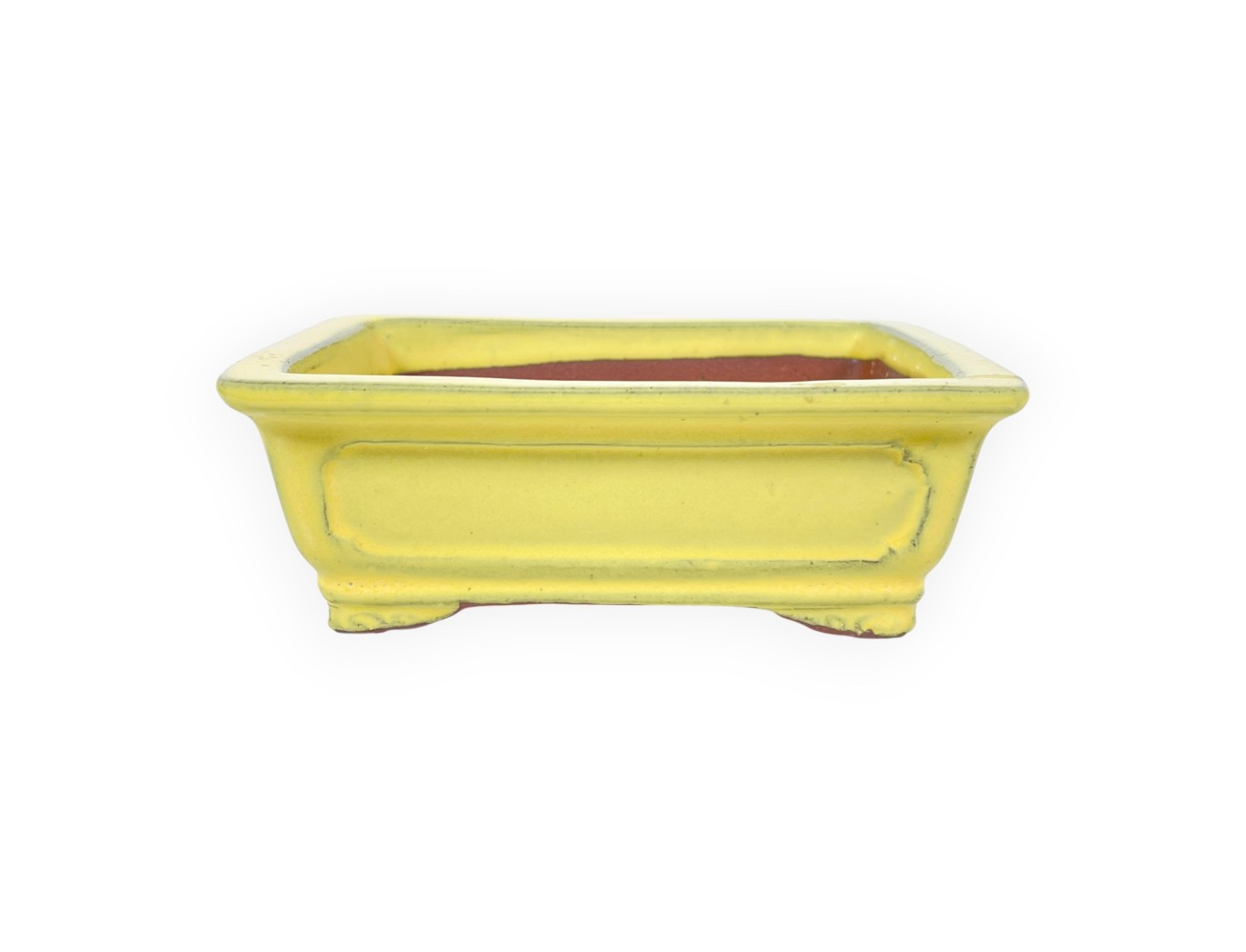 Maceta chinese para bonsái, fabricado a mano, rectangular, de gres esmaltado amarillo.
