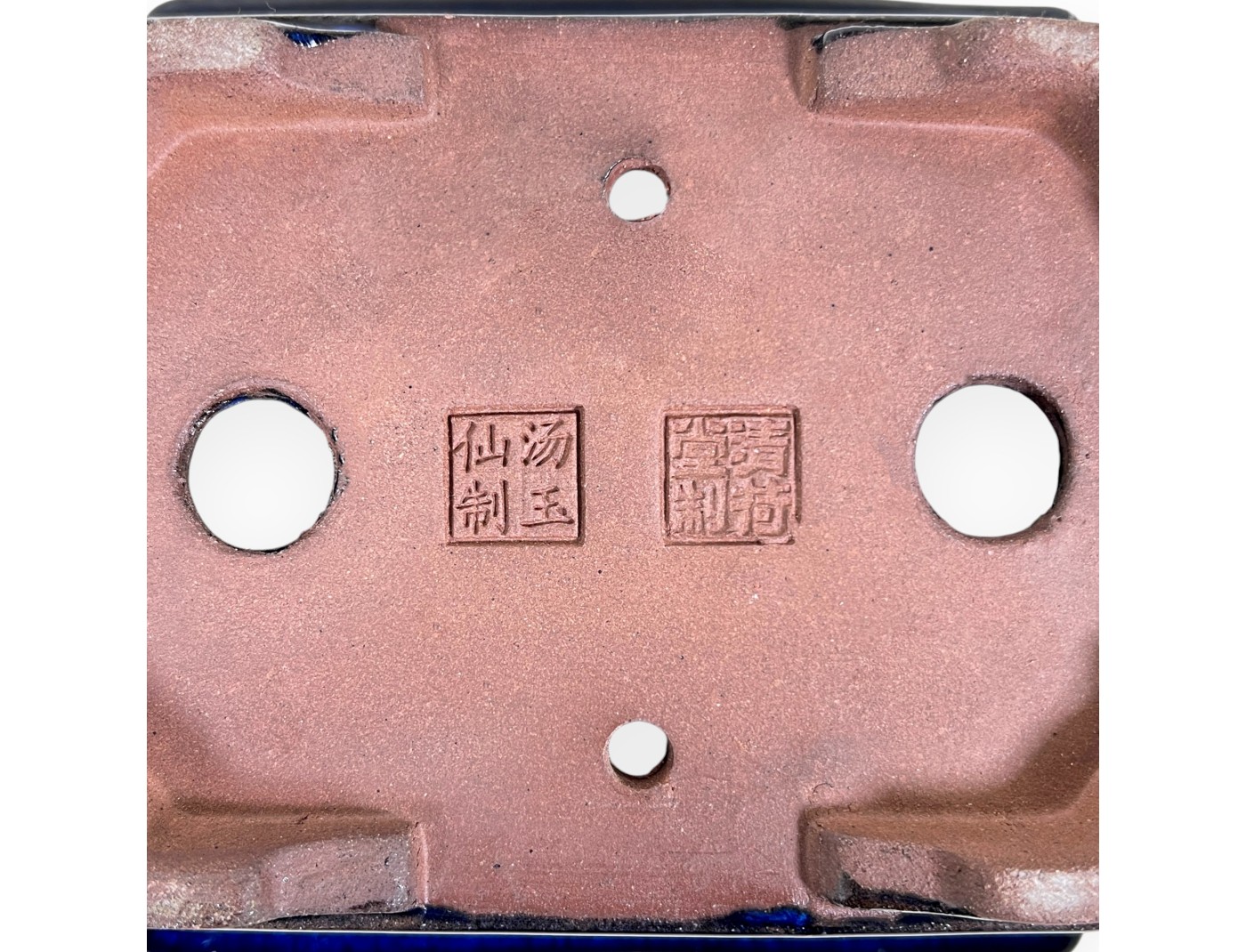 Maceta chinese para bonsái, fabricado a mano, rectangular, de gres esmaltado azul.
