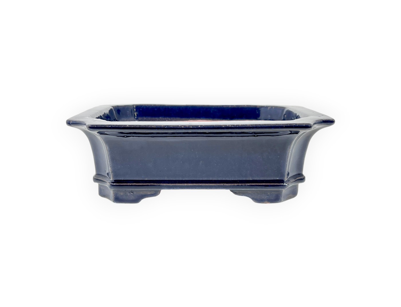Maceta chinese para bonsái, fabricado a mano, rectangular, de gres esmaltado azul.