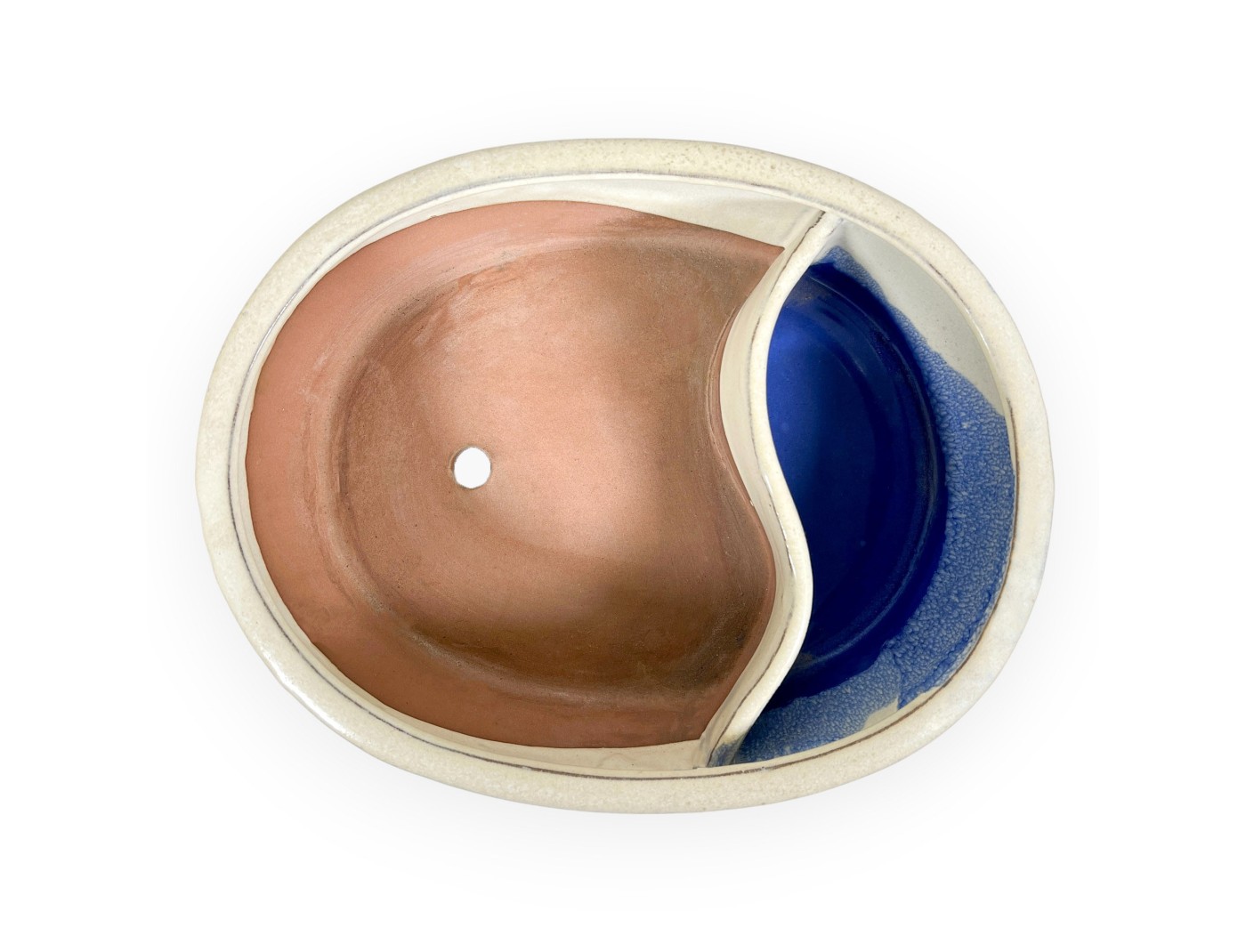 El esmalte crema le confiere un aspecto armonioso, acompañando a la planta sin eclipsarla nunca. La forma oval acampanada y las patas bajas y discretas garantiza estabilidad y proporción, añadiendo un toque de refinamiento y tradición al recordar el estilo clásico de los macetas chinos. El orificio de drenaje garantizan una correcta evacuación del agua, esencial para la salud del sistema radicular. Cuenta con una bandeja lateral integrada, esmaltada en azul, que crea una reserva de agua separada del área de cultivo principal. Esta pequeña reserva de agua contribuye a crear un microclima más húmedo alrededor del bonsái y añade un refinado detalle estético, similar a un pequeño estanque ornamental. Fabricada a mano en gres de alta calidad, esta maceta china combina robustez, resistencia a la intemperie y durabilidad. Una maceta elegante y versátil, perfecta para acompañar bonsái de hoja caduca y de flores.