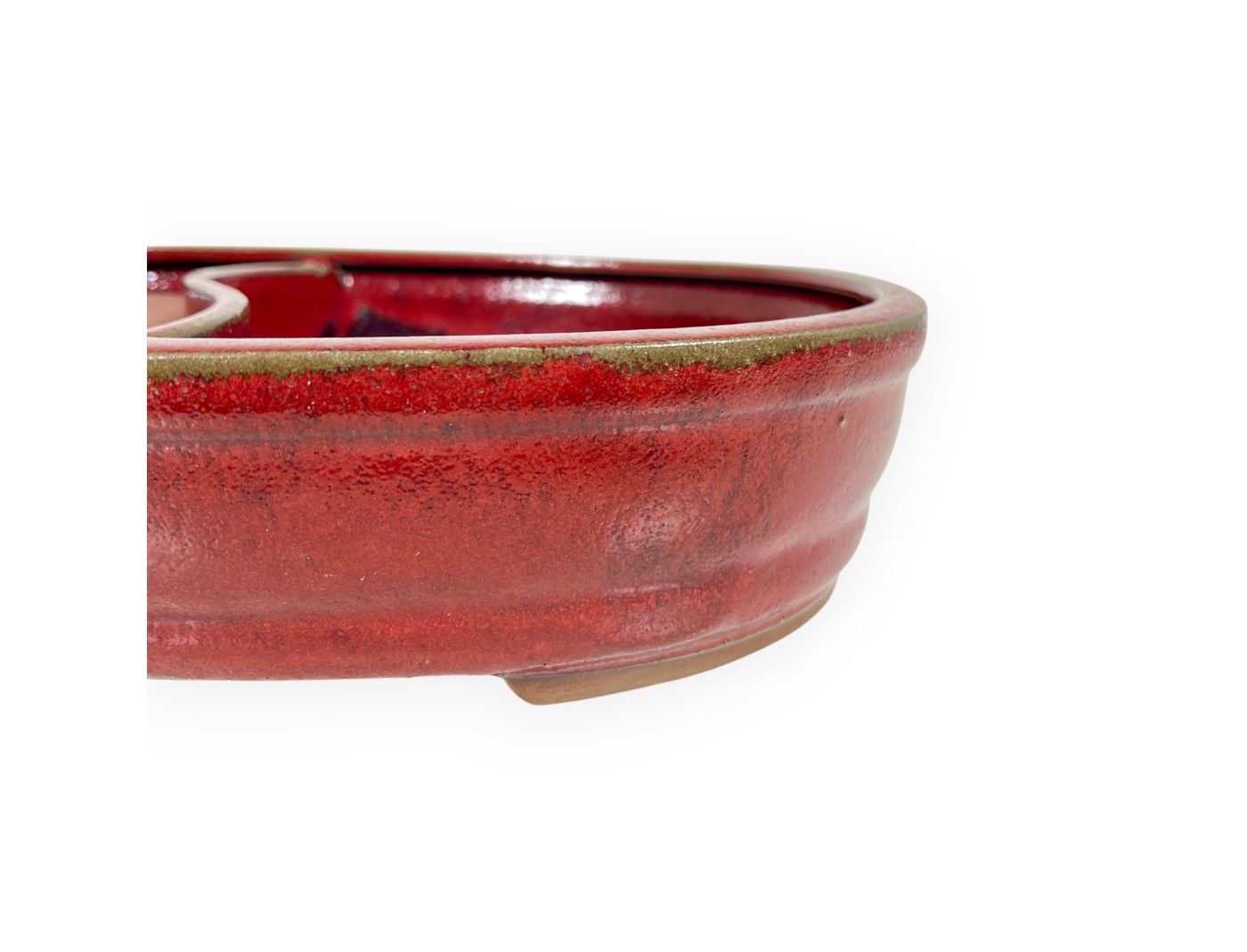 Maceta chinese para bonsái, oval con reserva de agua, de gres esmaltado rojo.