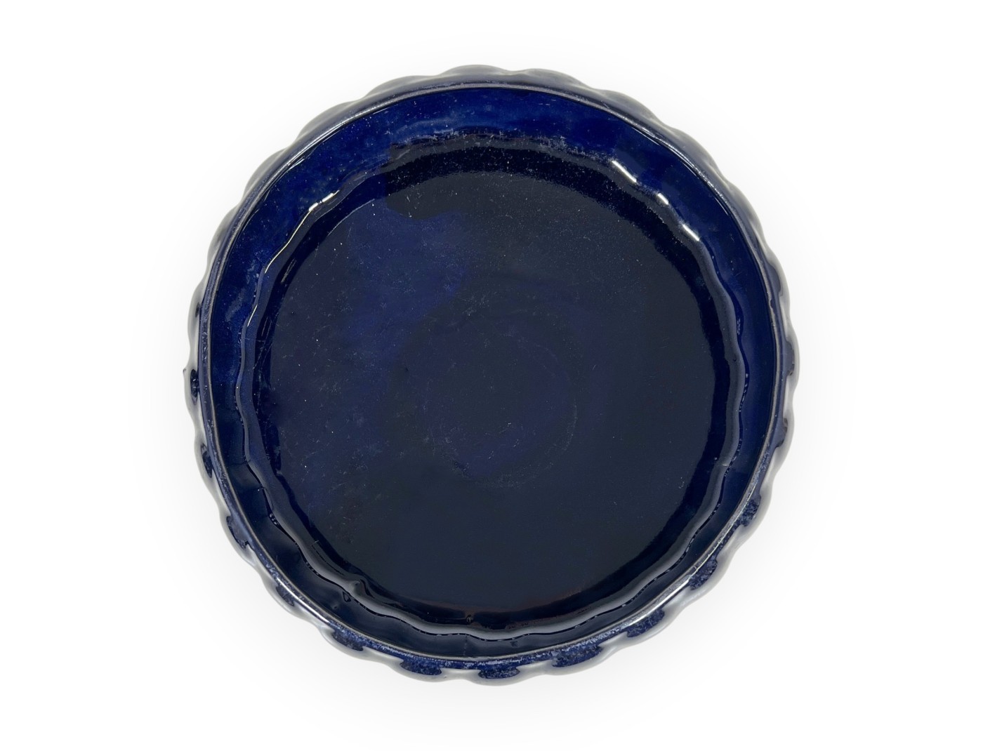 Maceta chinese para ikebana, redondo, de gres esmaltado azul.