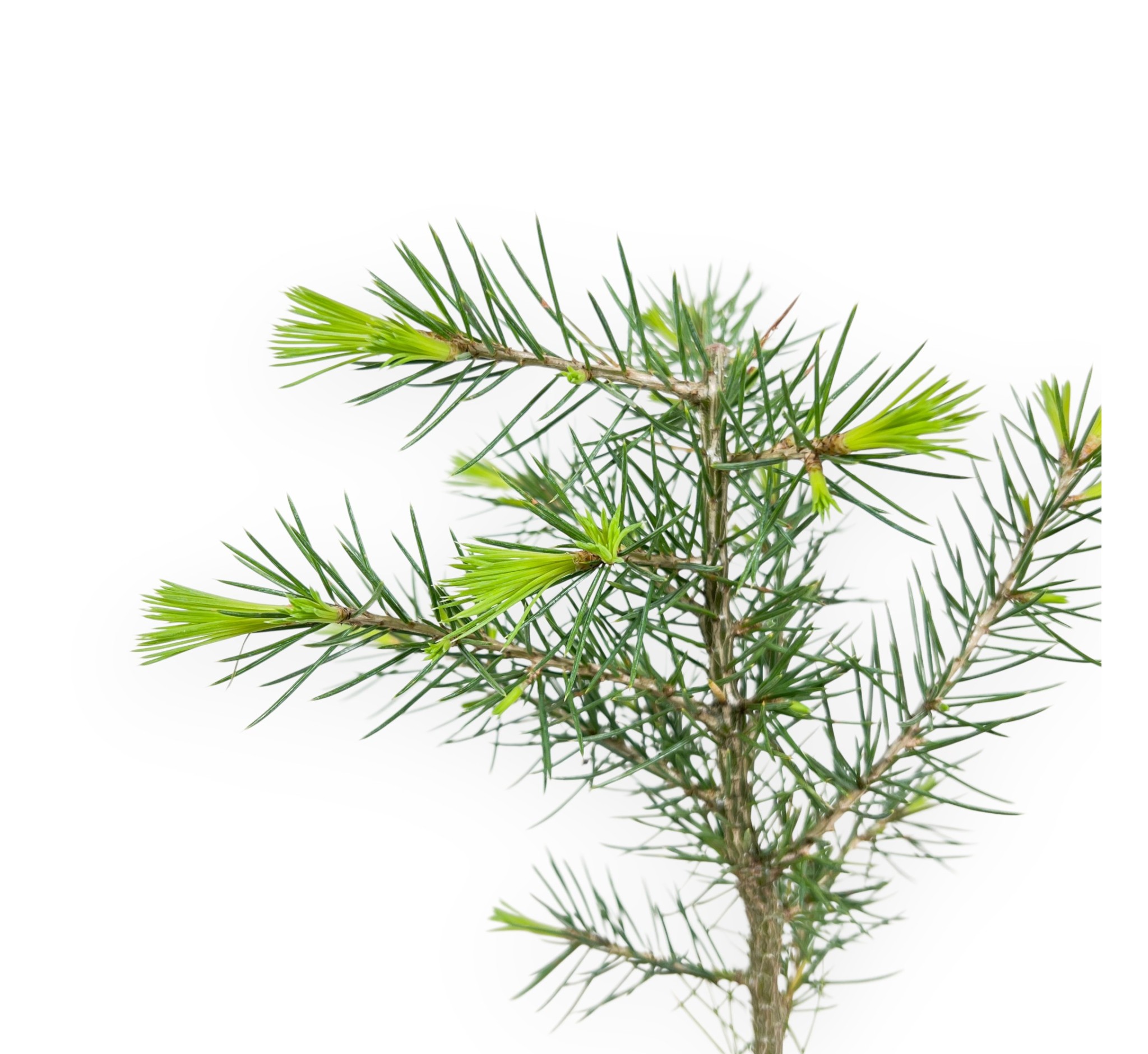 Planta de trabajo de Cedrus libani (Cedro del Líbano), una conífera perenne de crecimiento lento, muy apreciada por su porte elegante y su majestuosidad natural. Las hojas tienen forma de aguja, de color verde oscuro, agrupadas en pequeños grupos a lo largo de las ramas. En primavera, la planta produce nuevos brotes de un verde más claro y brillante, creando un agradable contraste de color. Resistente y fácil de mantener, también es perfecta para quienes buscan una planta decorativa para todo el año. Se cultiva en una maceta cuadrada de plástico negro.