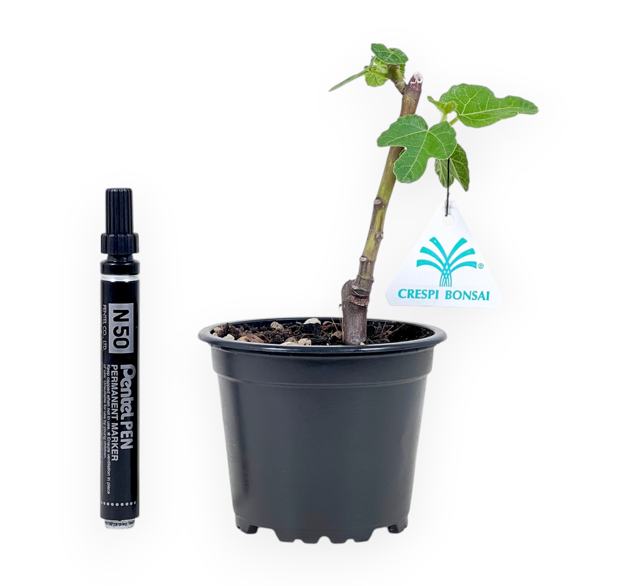 Planta para trabajar de fig caracterizado por una altura sin maceta de 12 cm, y un tamaño del tronco de 1 cm. La planta se cultiva en un maceta redondo de plástico cuyas dimensiones son Ø10xH8 cm.