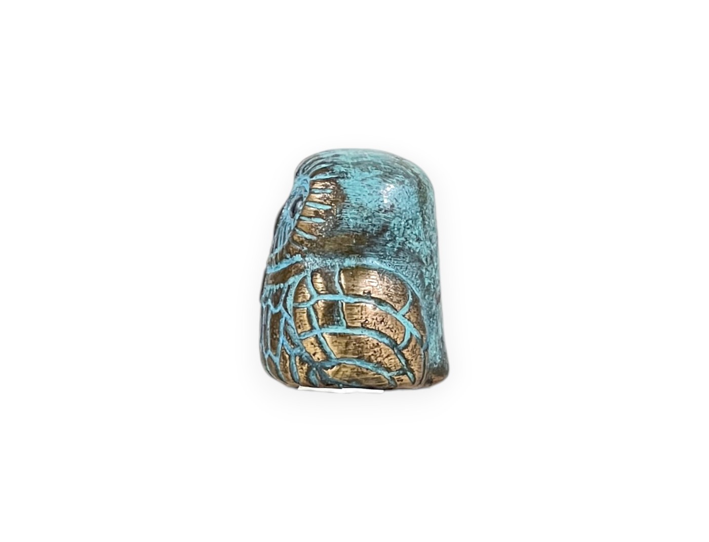 El tenpai de bronce, con tonos verde-azul bruñido, representa un pequeño búho con un acabado que recuerda la estética oriental tradicional. El búho, símbolo de sabiduría y protección, se presta especialmente bien para acompañar árboles bonsái pequeños y medianos, añadiendo un elemento narrativo y simbólico a la composición. Es ideal para enriquecer con estilo y profundidad visual la presentación de un tokonoma o una mesa de exposición.