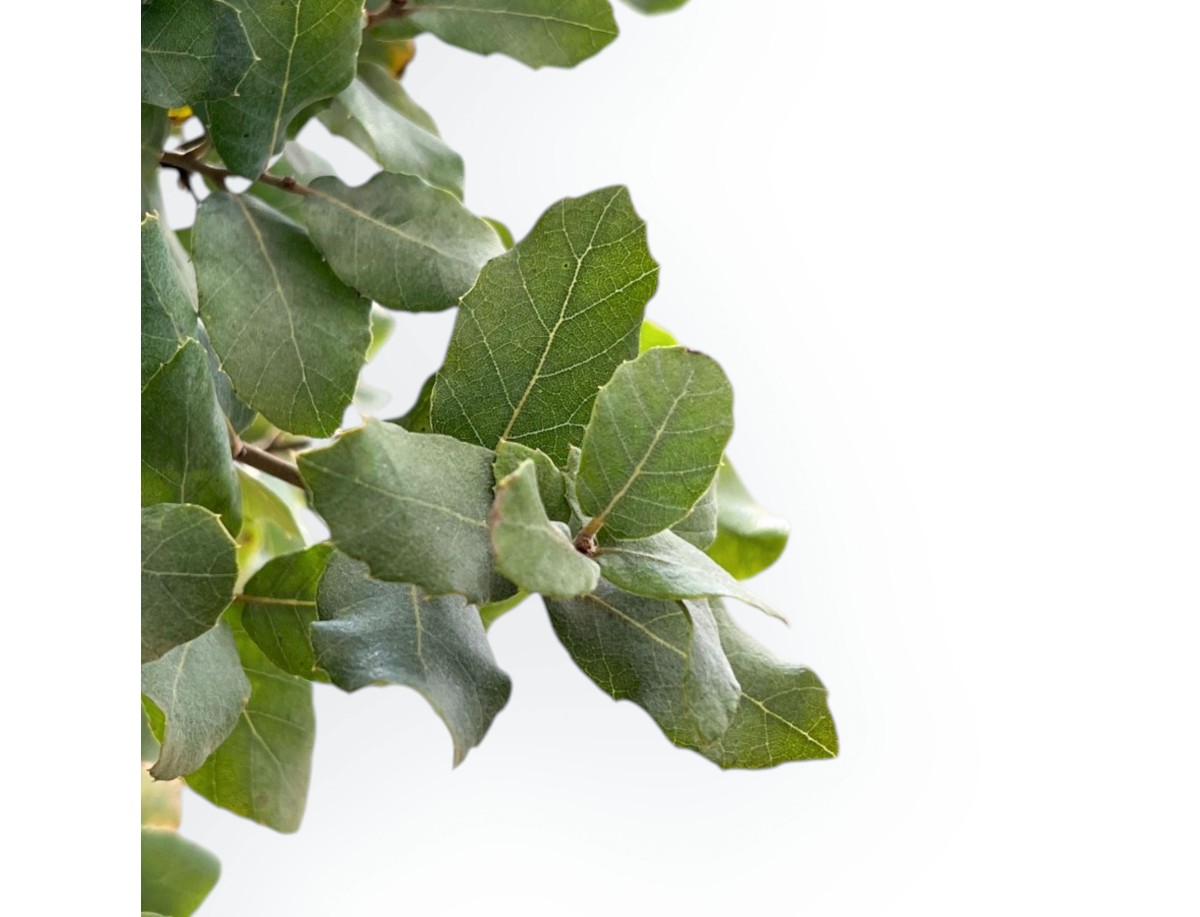 Bonsaï à feuilles persistantes, dans un pot rectangulaire en grès non émaillé