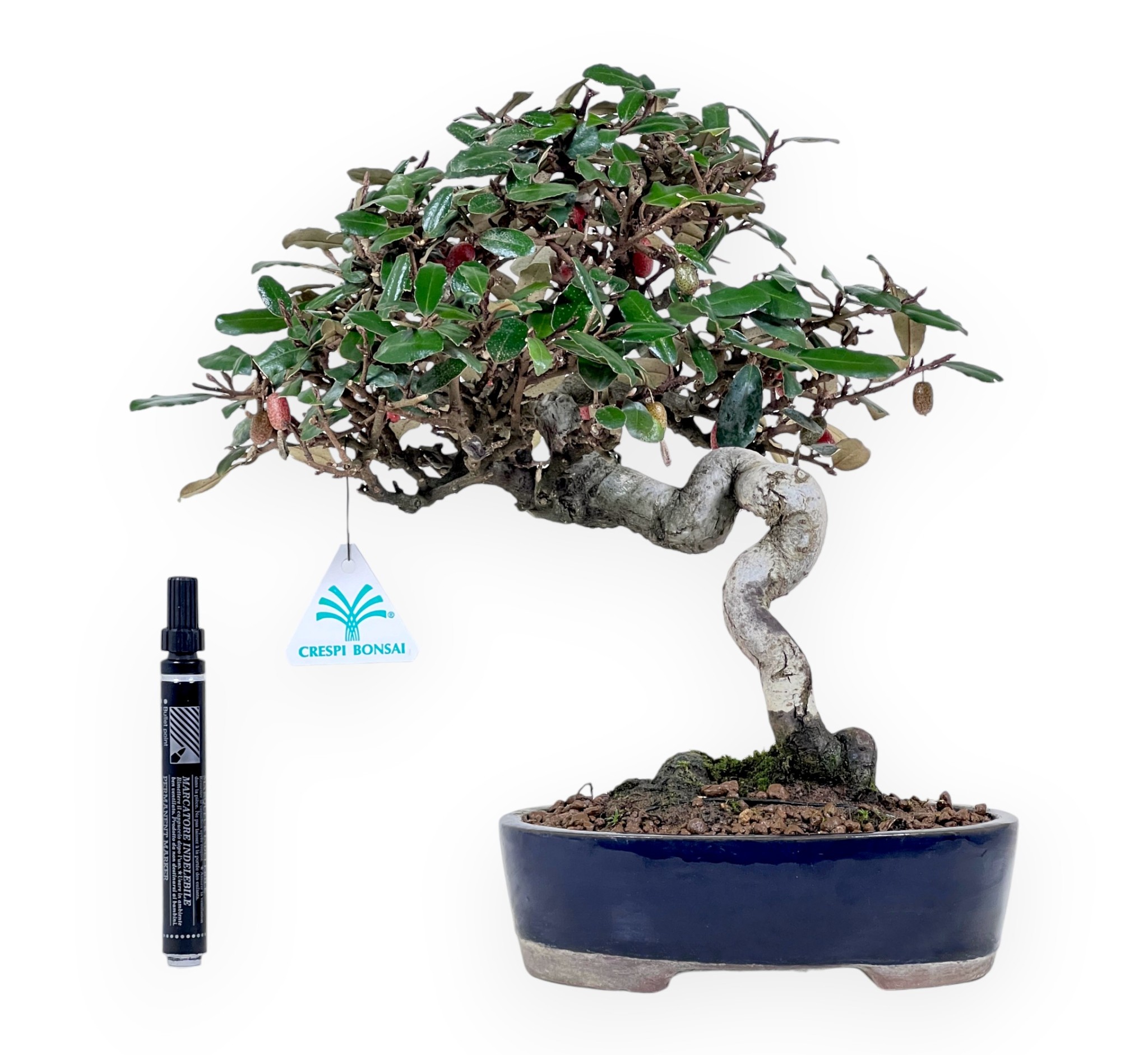 L'Eleagnum, fréquemment cultivé en bonsaï, est apprécié non seulement en tant qu'espèce fruitière, mais aussi pour son potentiel élevé en bonsaï. Il existe plusieurs espèces dont les fruits mûrissent de la fin du printemps à l'automne et qui constituent toutes un excellent matériel de formation. Parmi elles, Elaeagnus pungens est robuste et facile à former. Si l'on considère les feuilles, les fruits, le tronc, tout fait qu'il s'agit d'une espèce particulièrement adaptée à la réalisation d'un bonsaï. Généralement, si l'on demande à un amateur pourquoi il ne cultive pas d'Eleagnus pungens, la réponse la plus fréquente se réfère à la difficulté de les voir en fruits. Pourtant, ce sont des arbres aux caractéristiques spectaculaires, comme l'écorce qui devient presque noire à l'âge adulte, et qui, si l'on s'en occupe correctement, donnent de grandes satisfactions lorsqu'ils fructifient. Dans l'art du bonsaï, les styles qui leur conviennent le mieux sont les suivants : droit informel, incliné, prostré et en cascade.