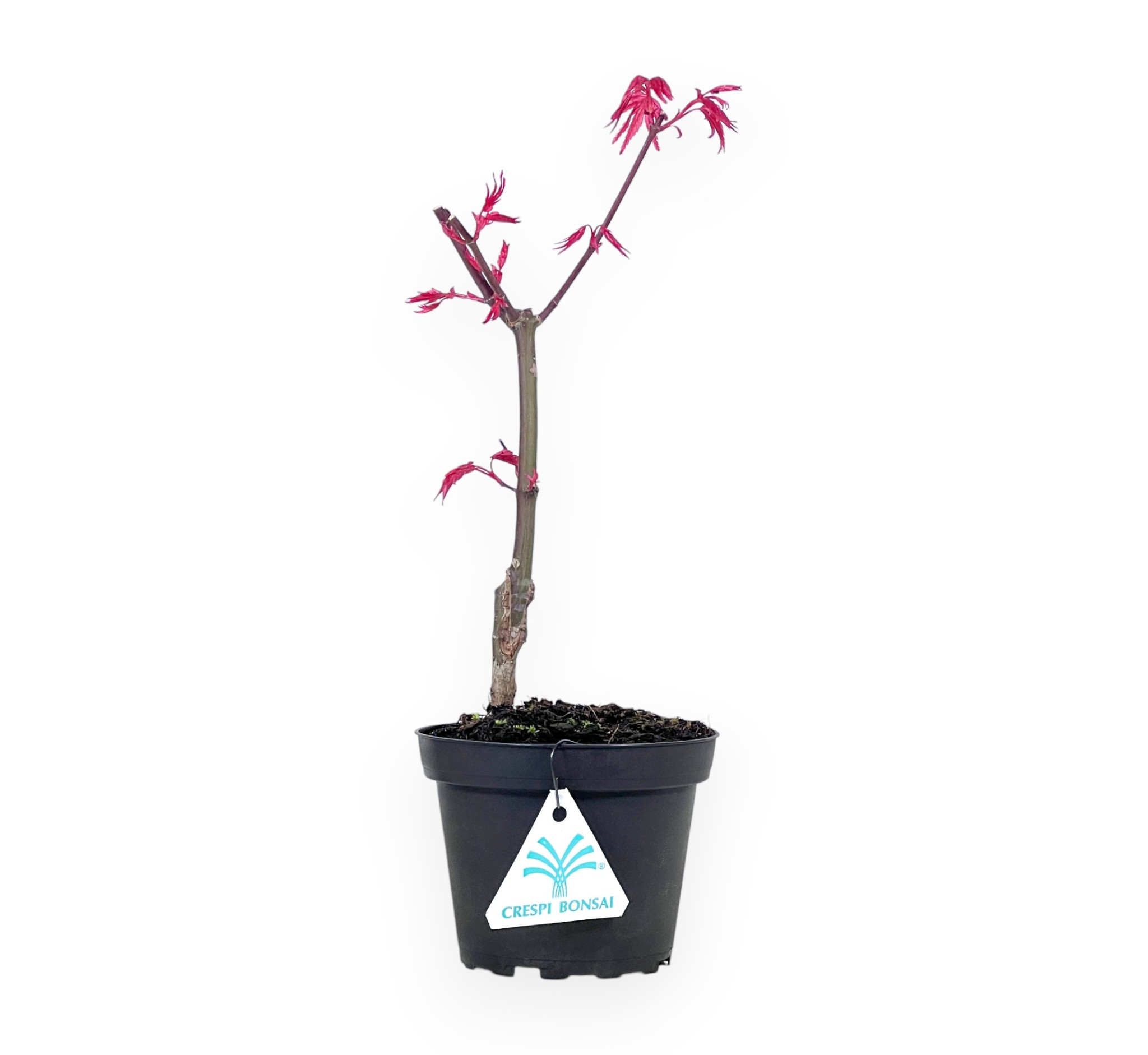 Plante d'érable caractérisée par une hauteur hors pot de 21 cm et un tronc de 1,5 cm. La plante est cultivée dans un pot rond en plastique dont les dimensions sont Ø10xH8 cm.