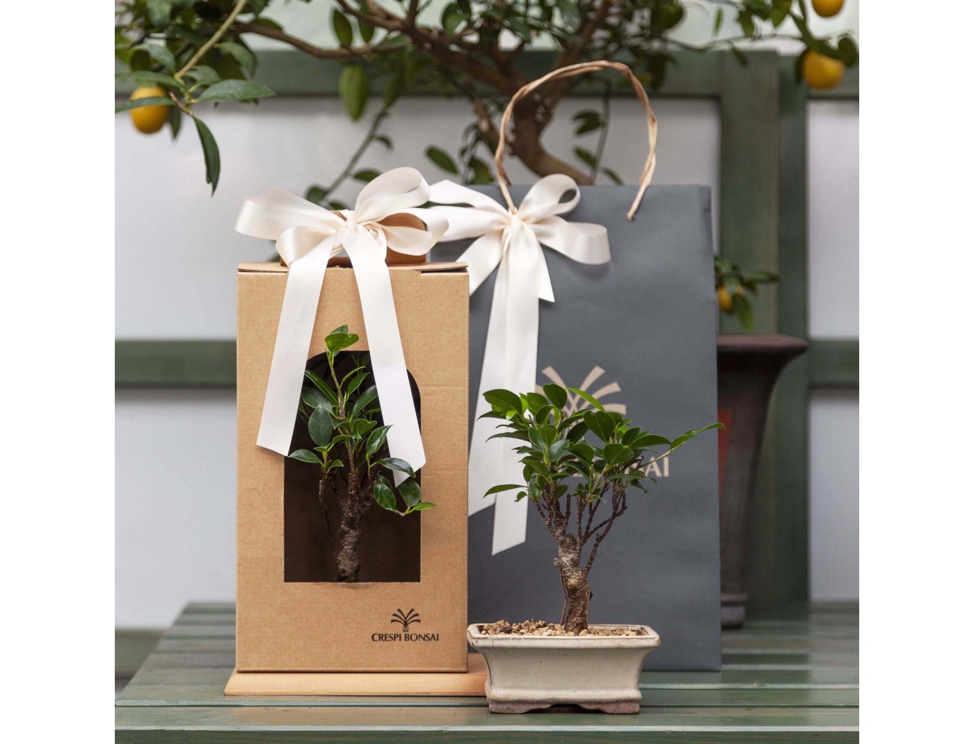 Boite de couleur naturel pour confectionner les petits bonsai à offrir. Peut se commander seulement avec les bonsai de €16,50 à €20,00.