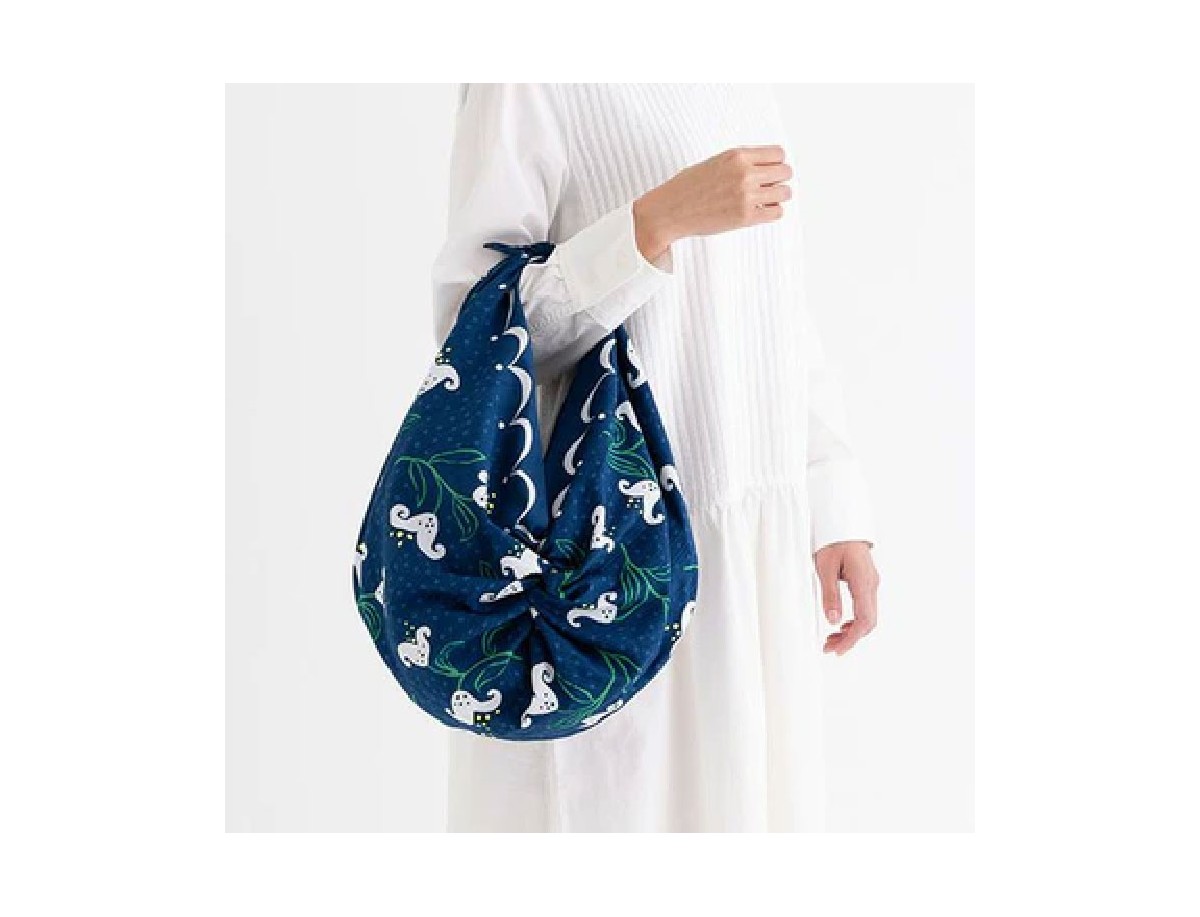 Ce furoshiki a été conçu par Yumeji Takehisa, un célèbre peintre et designer japonais au début des années 1900. Ce furoshiki est basé sur le motif de lys de la couverture du livre de Yumeji. Les œuvres de Yumeji utilisent des motifs dynamiques et des teintes uniques qui se rapportent à des motifs liés à la vie quotidienne. Le symbole de l'oiseau en bas à droite et les lignes autour du bord sont également des motifs conçus par Yumeji. Le symbole de l'oiseau est positionné de manière à être visible lors de l'emballage d'un coffret cadeau. Il apparaît au niveau du nœud. Le lys exprime la propreté selon une ancienne expression japonaise. Même en Europe, c'est un symbole de paix, de pureté et de liberté. C'est aussi une fleur populaire pour les bouquets de mariage. Ce serait un cadeau très significatif.