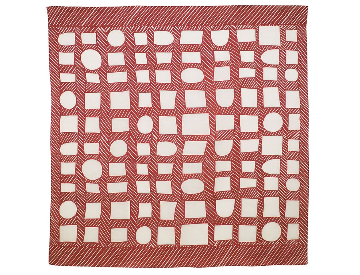 Motif avec des formes et des lignes sur fond rouge - 100 % Lin