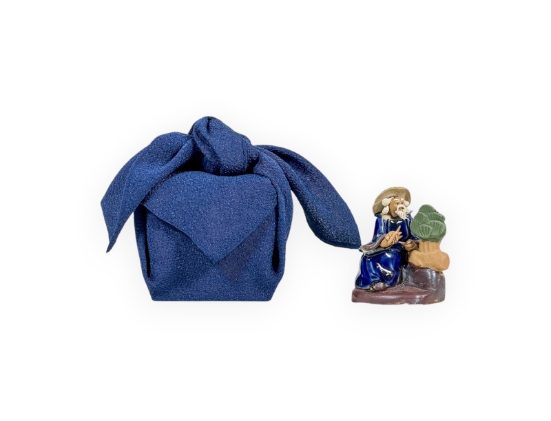 L'ensemble se compose d'une Statuette de bonsaïst bleu et d'un chirimen Furoshiki bleu unicolore.